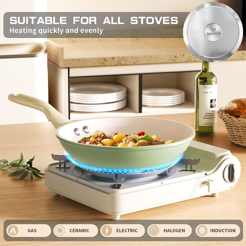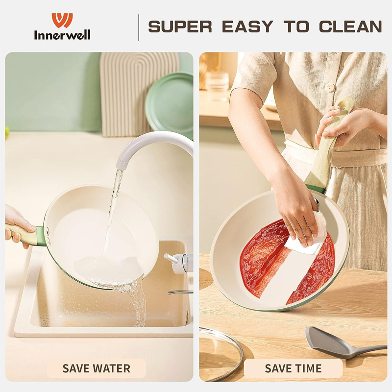 Innerwell 20cm Ceramic Skillet NonStick Frying Pan PFOA & Free Non-Stick Coating Suitable All Stove - Green