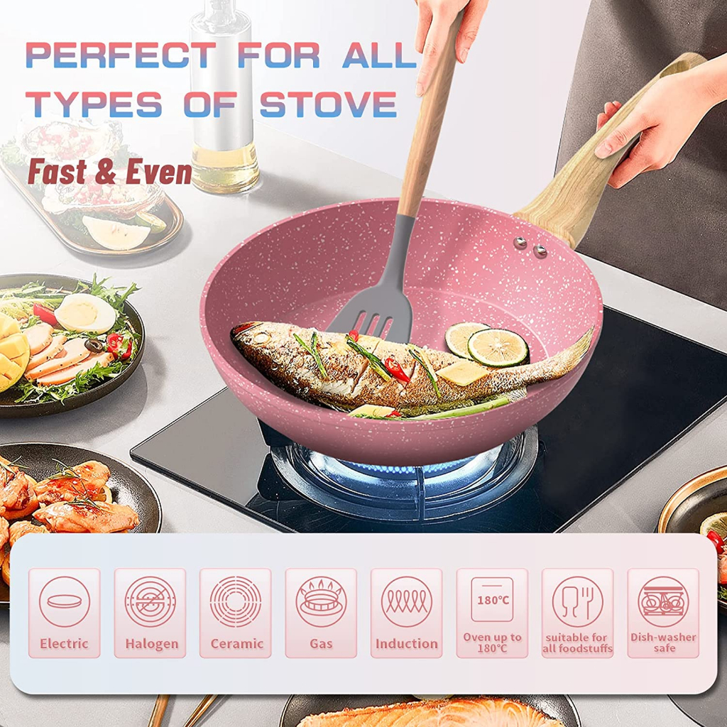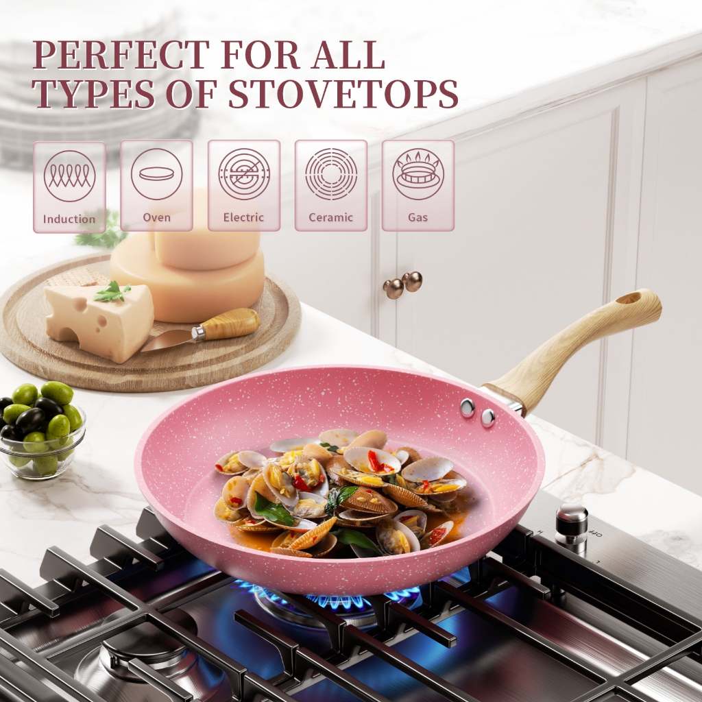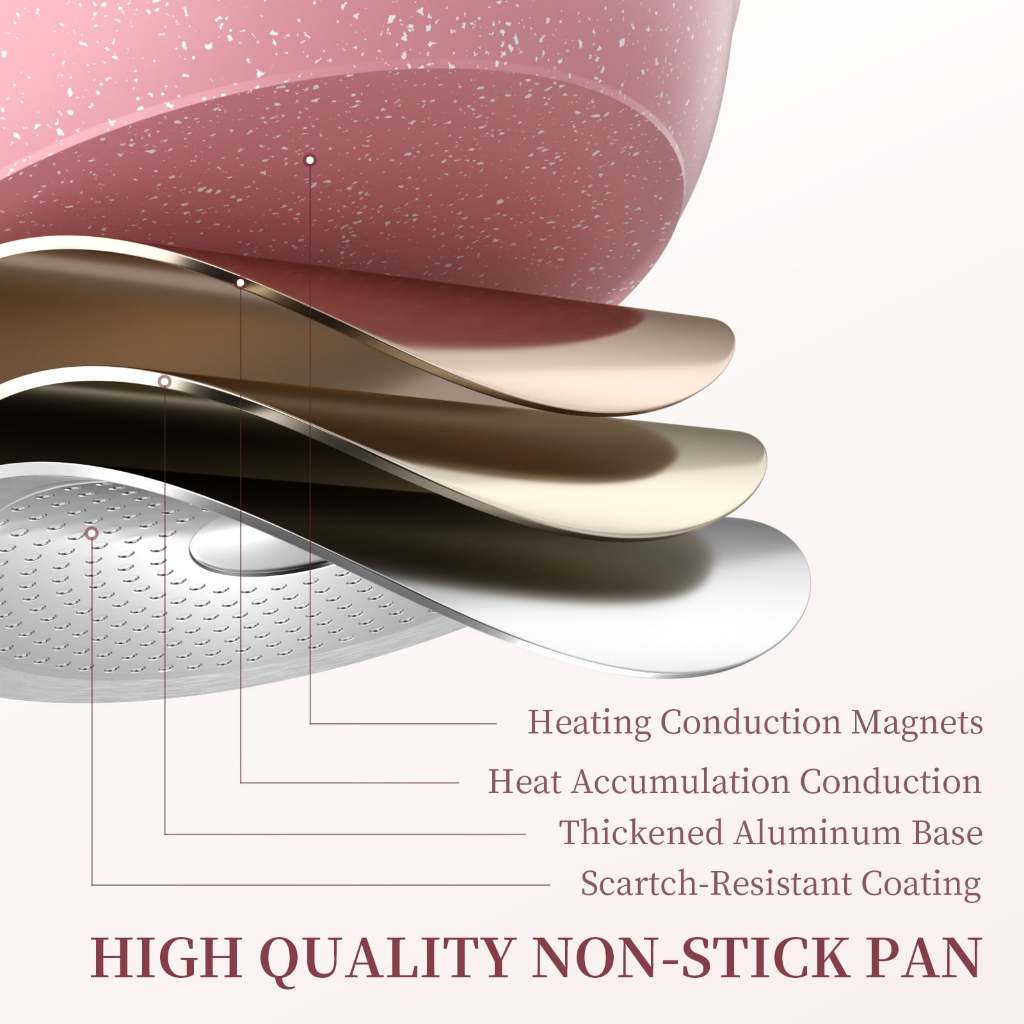 Innerwell Granite Aluminium Non Stick Casserole Pot Fry Pan PFOA Free Cookware Tool Suitable All Stove - Pink (8"/9.5"/11")