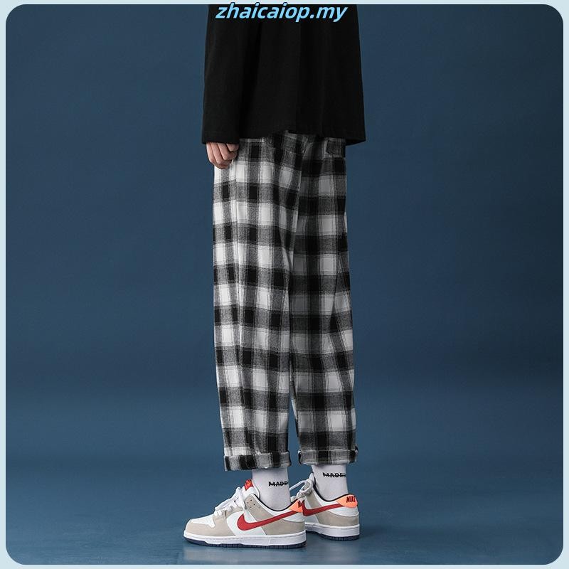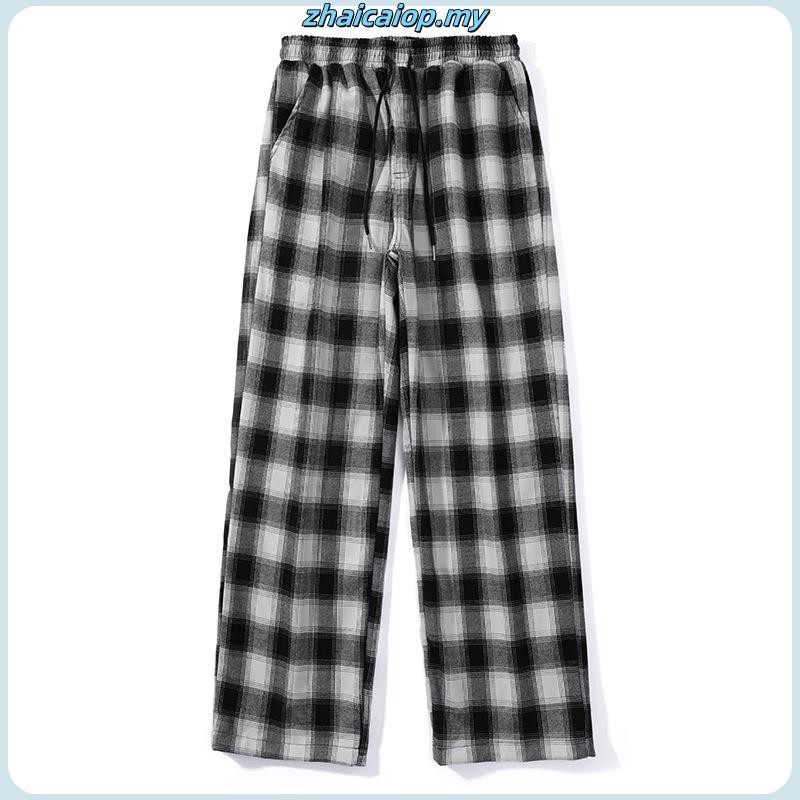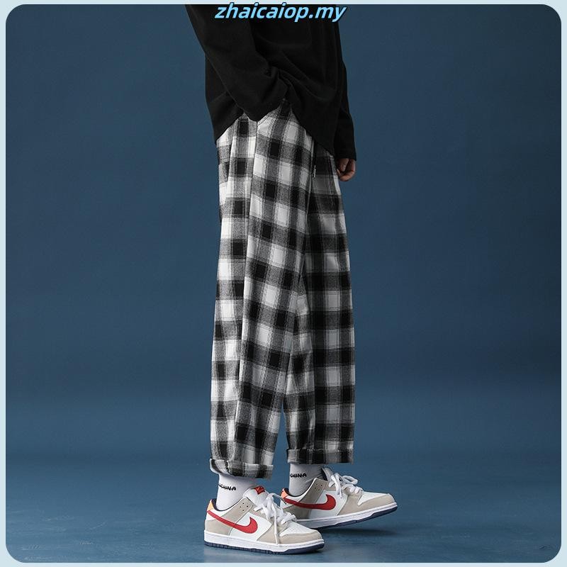 【运动长裤】黑白格子裤子男直筒宽松ins情侣阔腿休闲裤百搭帅气韩版老爹裤男Black and White Plaid Pants Men's Straight Loose Ins Couple'【fusuu.my】4.5