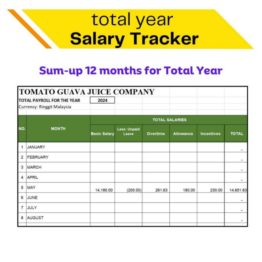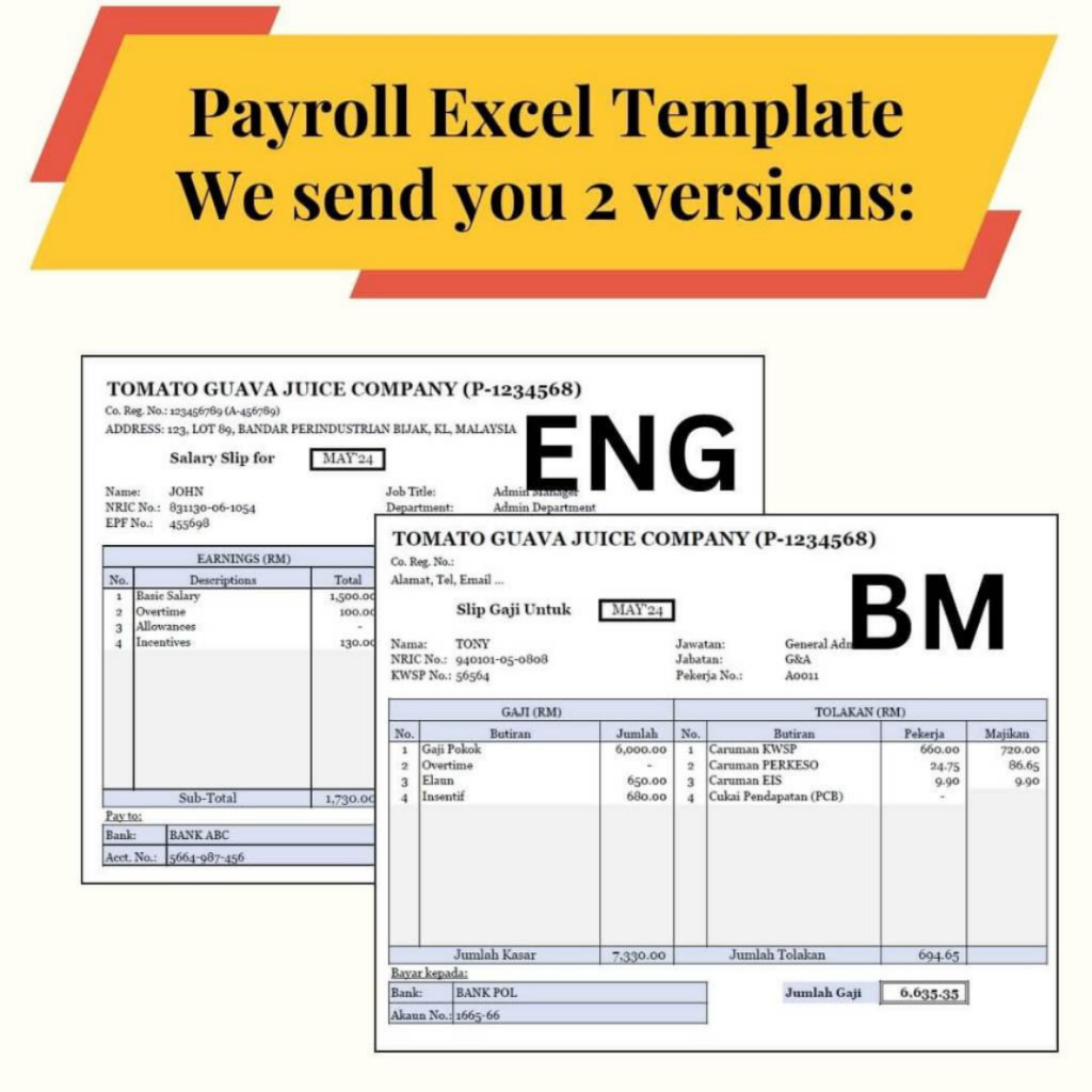 ?INSTANT? Payslip Template + Overtime + Unpaid Leave Tracker Excel Template Auto Calculation EPF SOCSO | Slip Gaji Excel