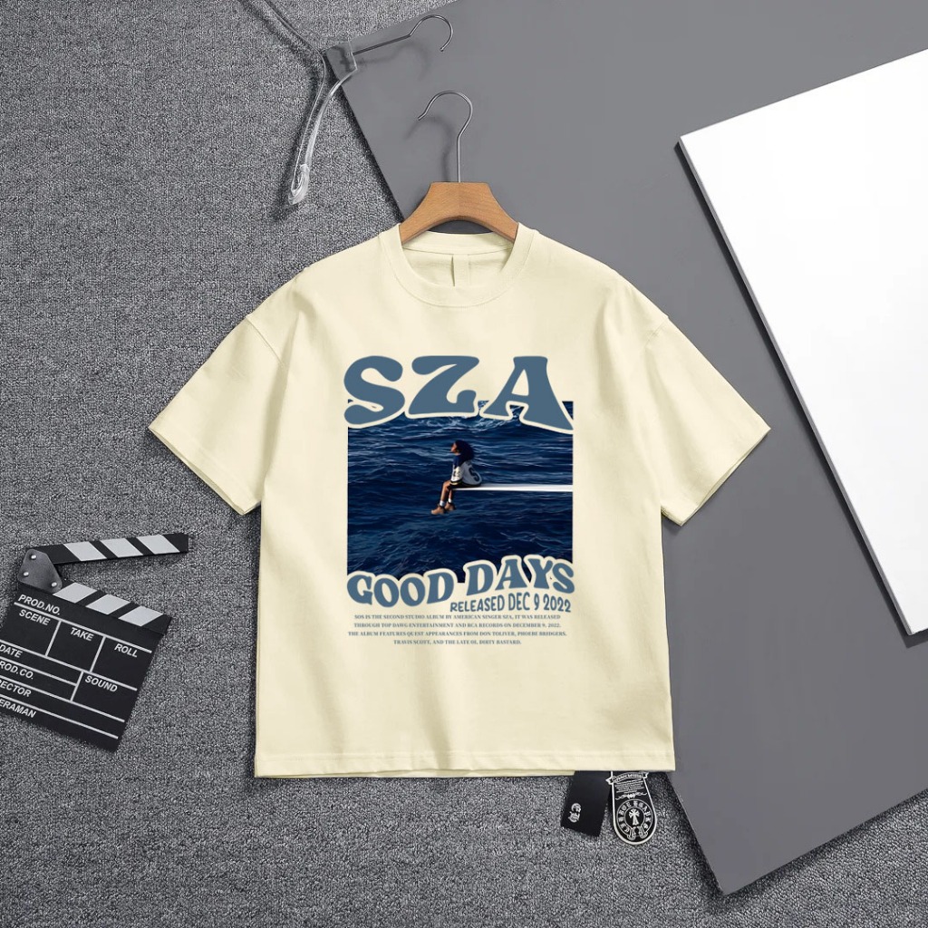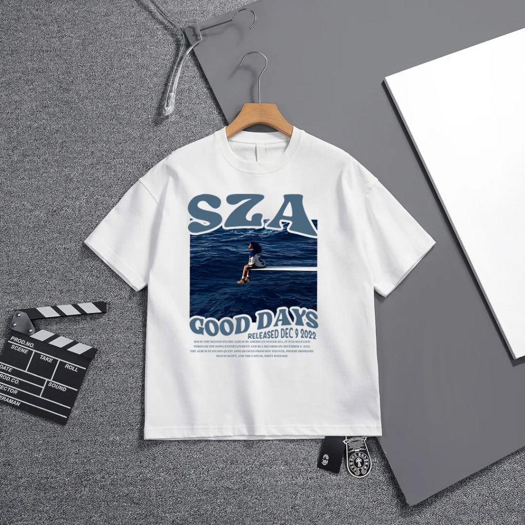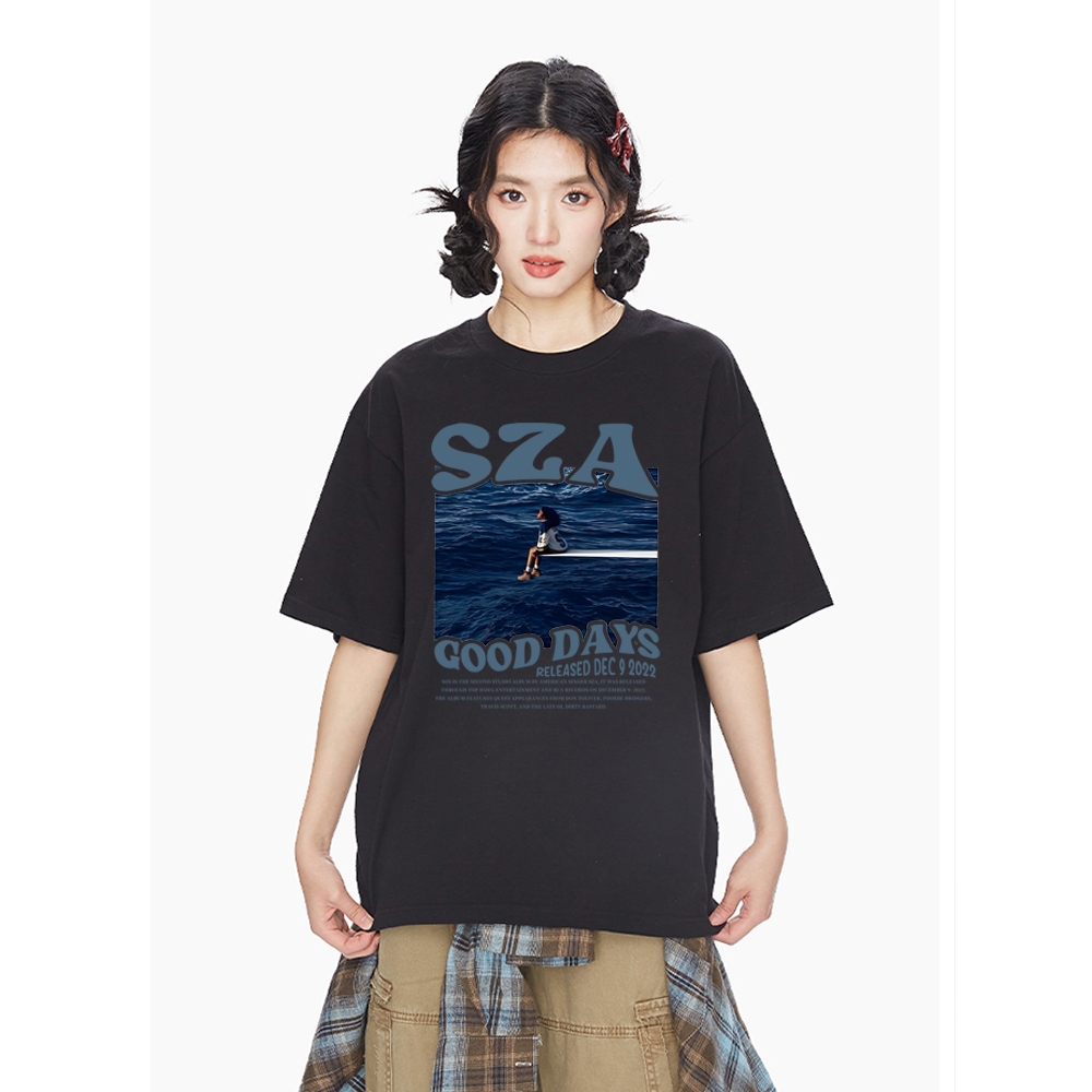 Interesting letter seaside print Korean-style original T-shirt for women, new summer short sleeve design.