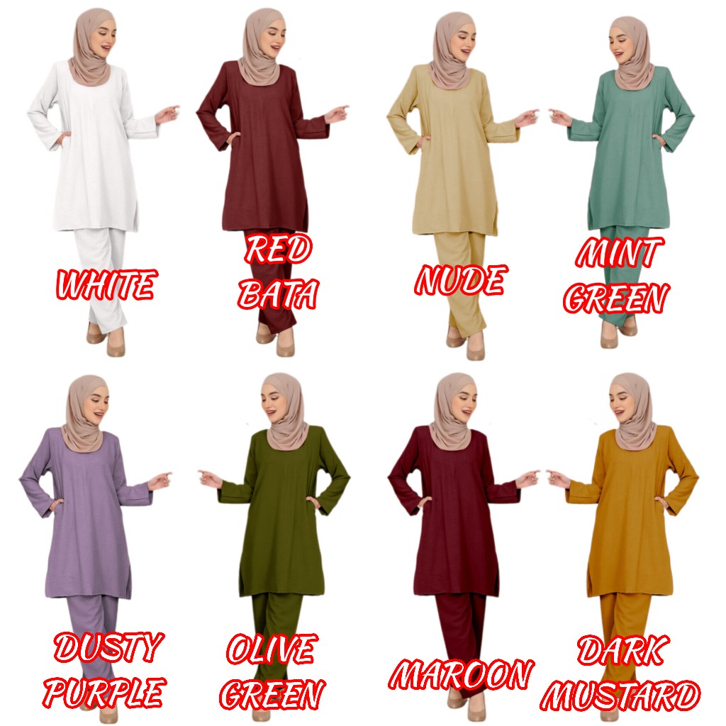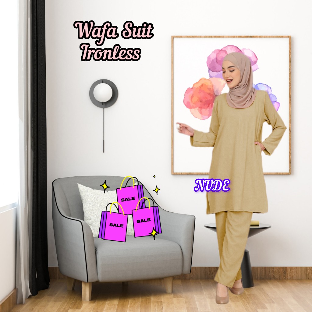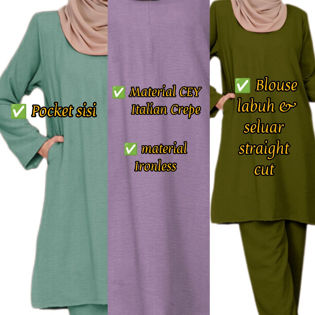 Ironless Wafa Suit (S-2XL) Material Cey Italian Crepe Warda Set Basic Muslimah Suit Set Blouse & Pants Set, Palazzo Suit
