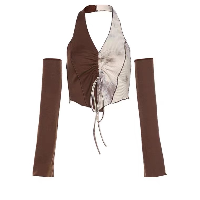 Irregular croptop Women's Drawstring Retro Long-Sleeved Top