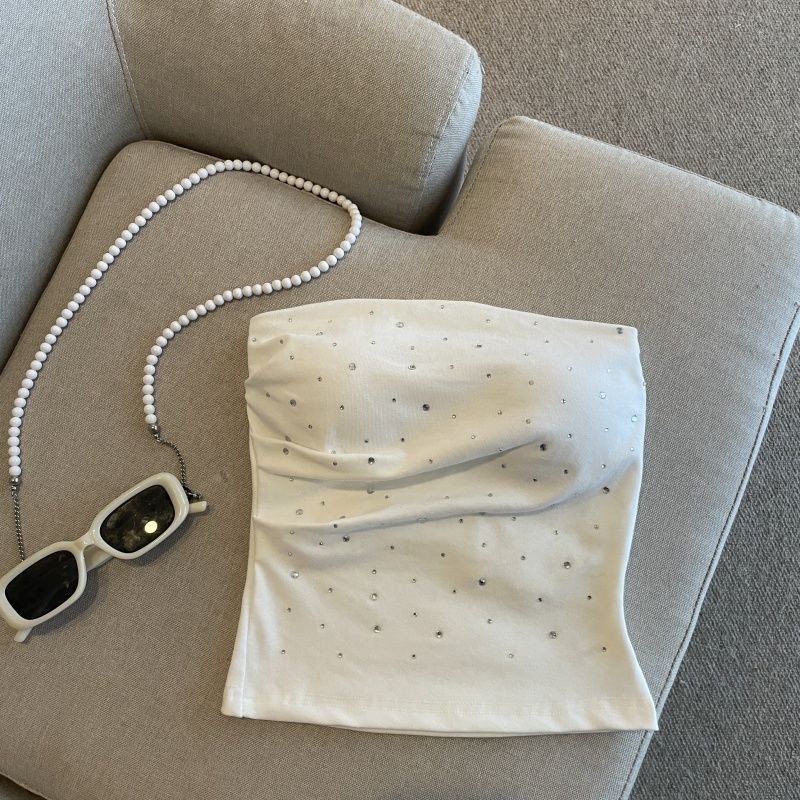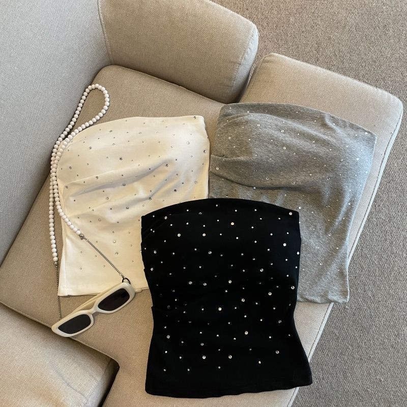 Irregular Hot Diamond Laced-Up Gray Sleeveless Tube Top Women