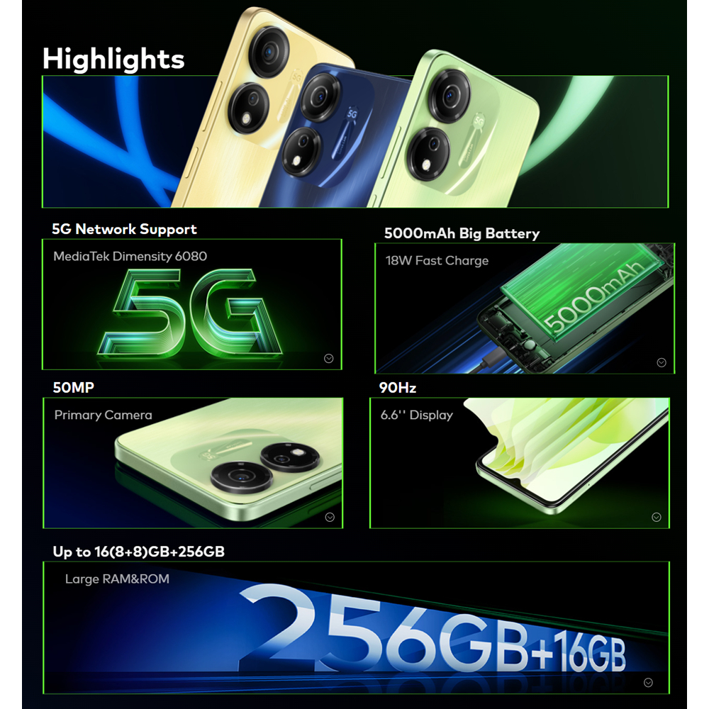 iTEL P55 5G (6GB+128GB | 8GB+256GB) Smartphone | 1 Year ITEL Malaysia Warranty