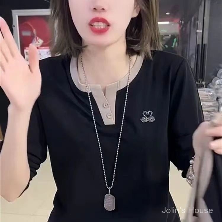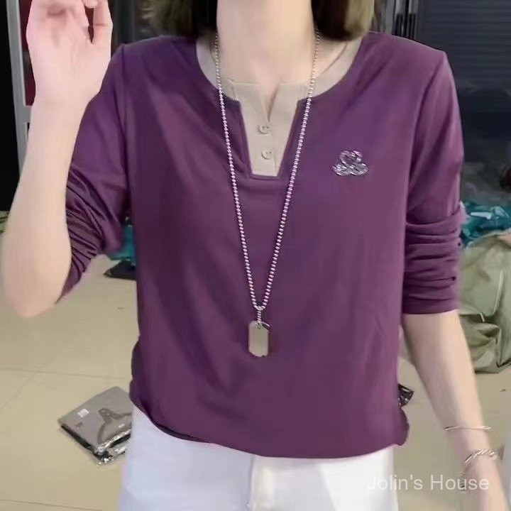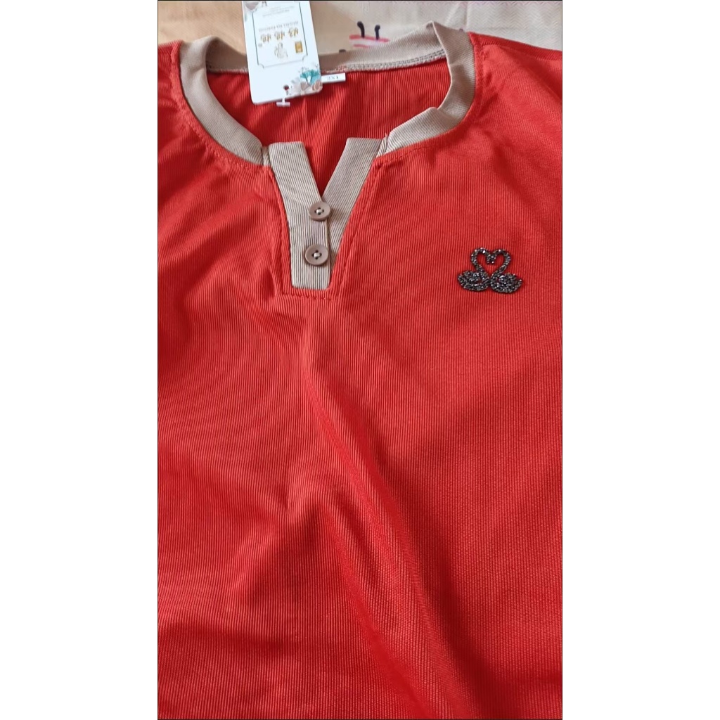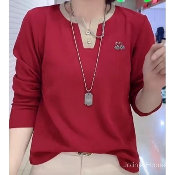 J1420?Hot-selling Bottoming Shirt Long-sleeved T-shirt Red Top Women Shirt CNY Shirt