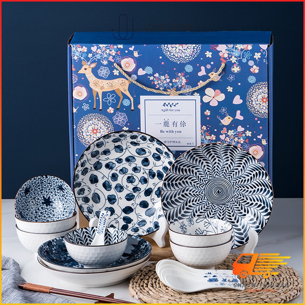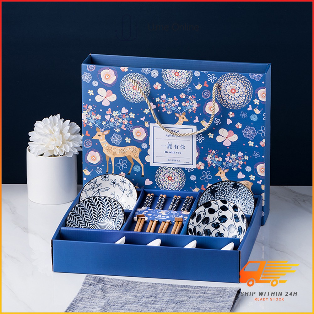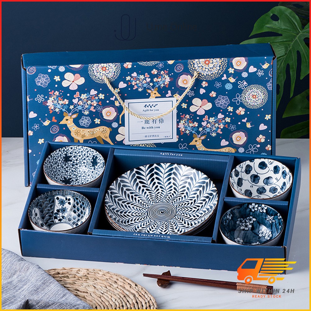 Japanese Ceramic Tableware Bowl Spoon Plate Chopsticks Gift Box Gift Bowl Set Family Tableware Sets | 日式陶瓷餐具礼盒