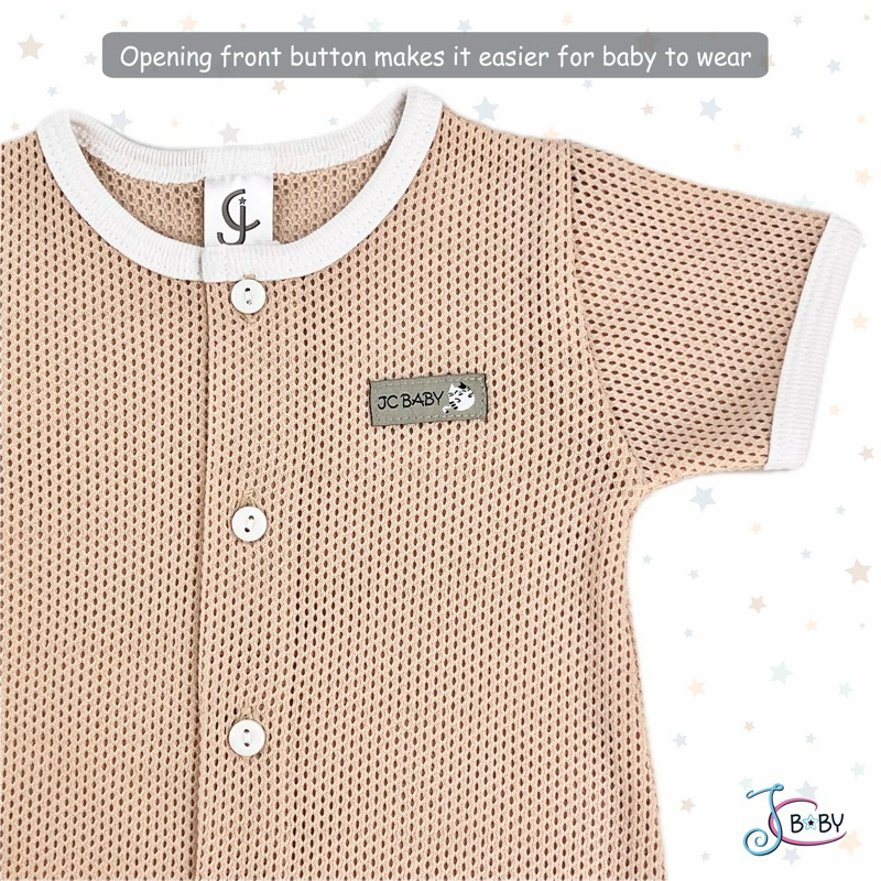 JC BABY Newborn Baby Clothes Eyelet Front Opening Romper Bayi Eyelet Berlubang Infant Baby Boy Girls Bodysuits Jumpsuits