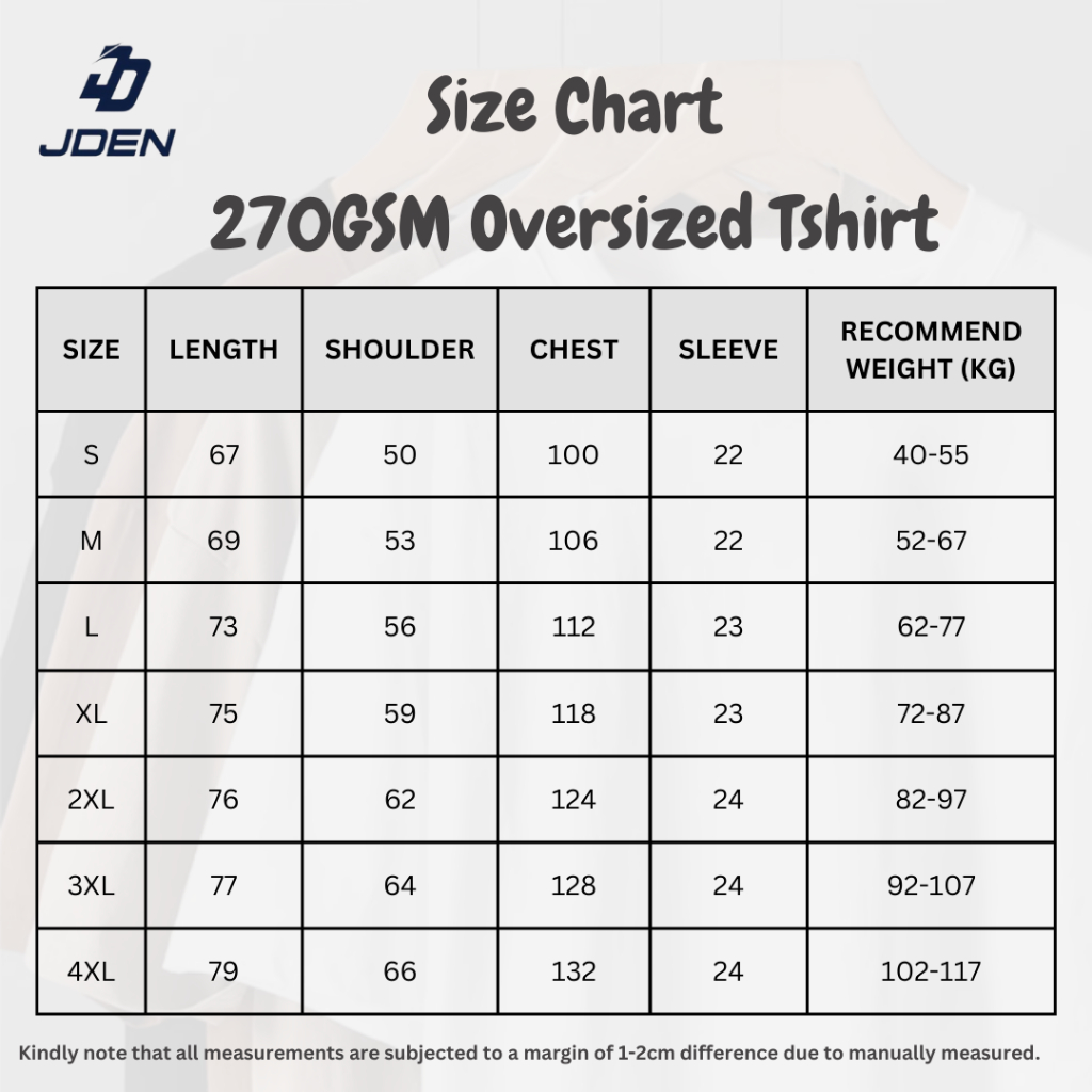 JDEN Oversized T-shirt 270gsm (Unisex) - 100% Cotton Tshirt Lelaki Perempuan 40-120KG Plus Size - Baju Lelaki/Perempuan