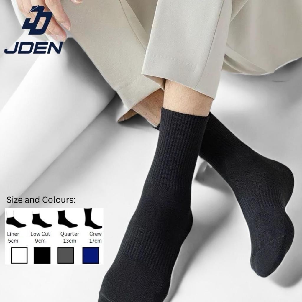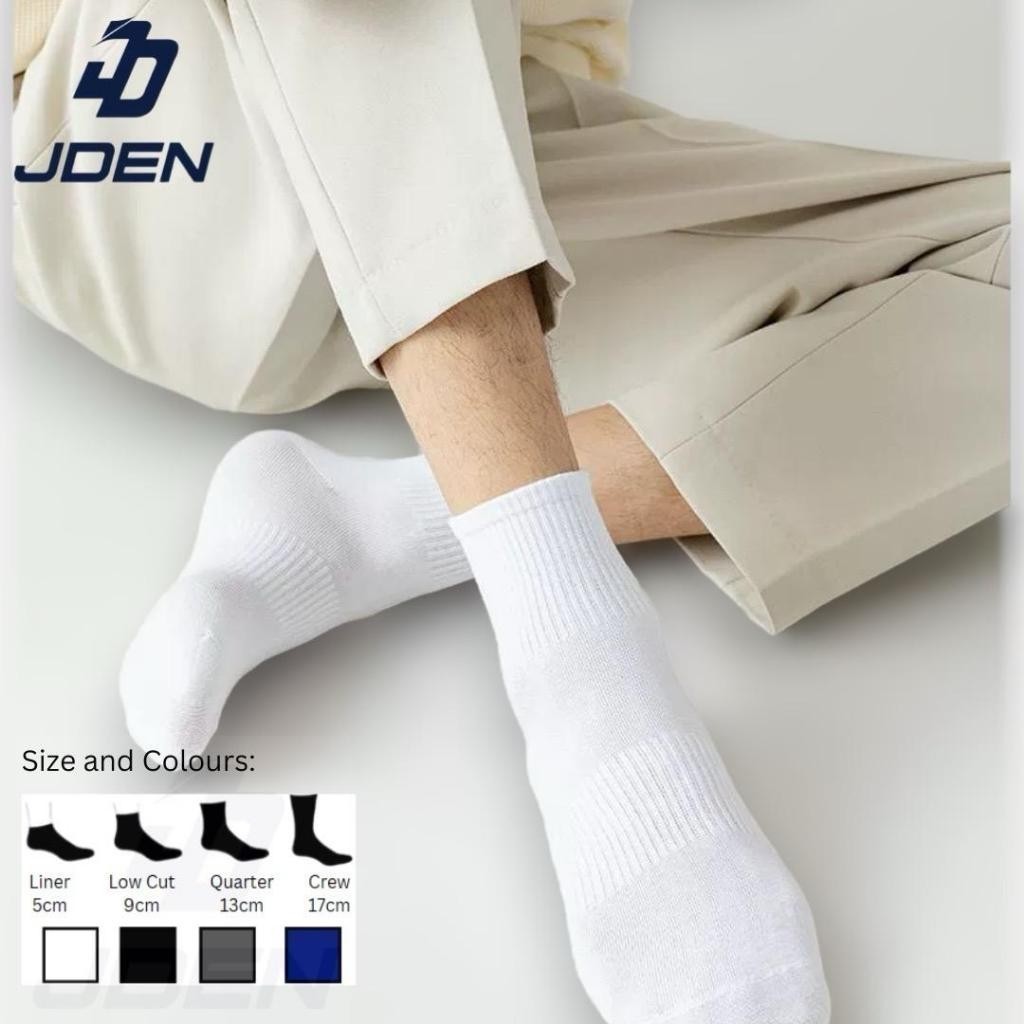 JDEN Premium Cotton Plain Socks Unisex Free Size Sport Running Liner Low Cut Quarter Crew/ Stokin Pendek Panjang Kosong