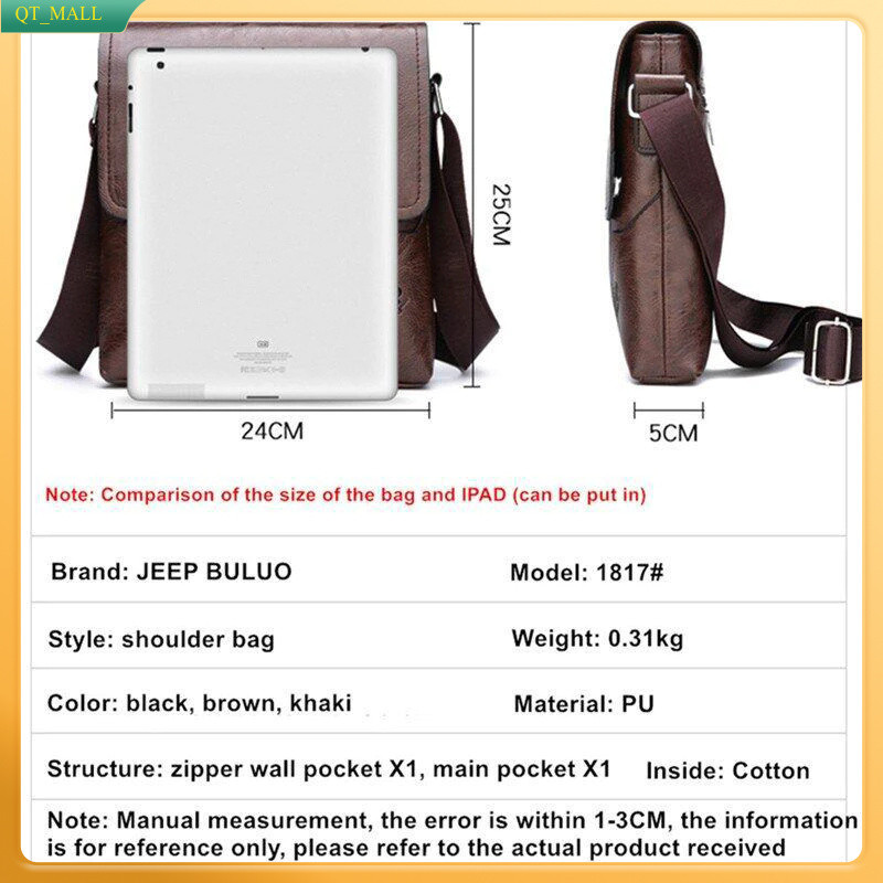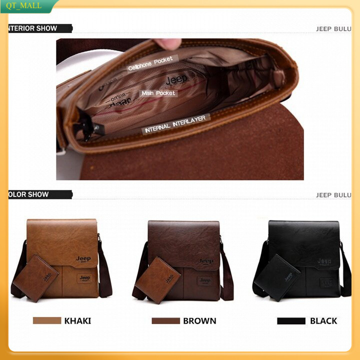 Jeep BULUO Men Shoulder Messenger Bag Man Sling Cross Body Bag Leather Beg Silang Bahu Sandang Lelaki Kulit 1817...
