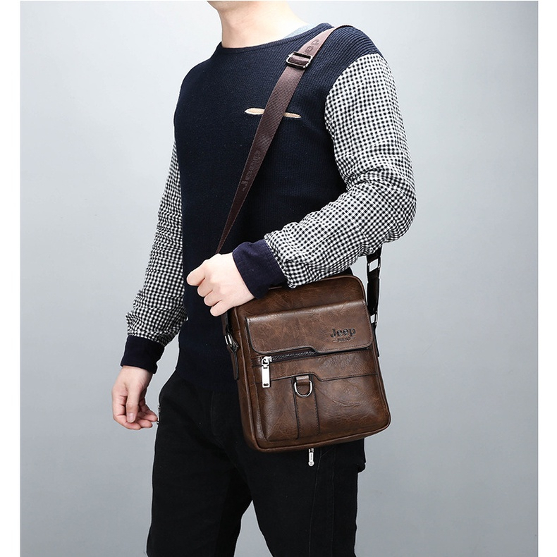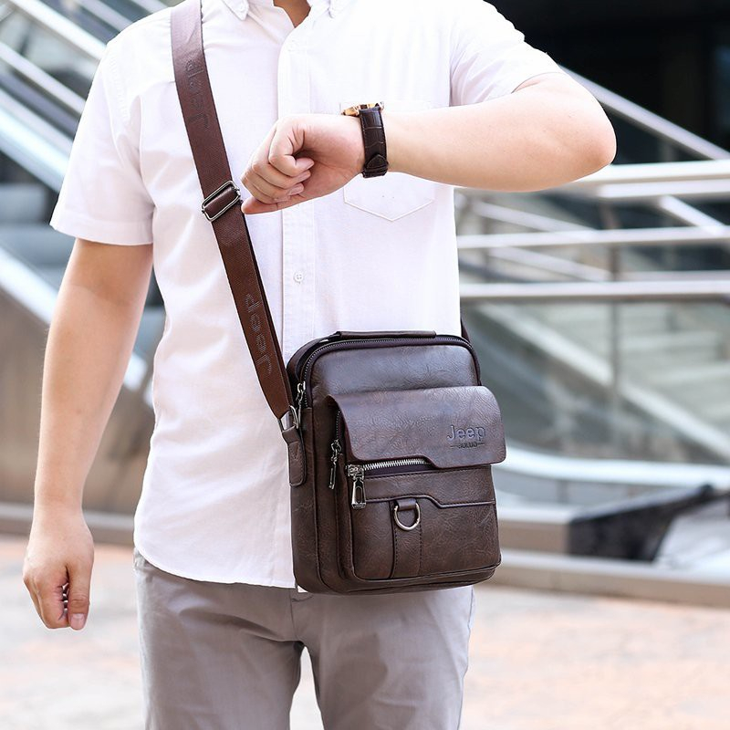 Jeep BULUO Men Sling Messenger Bag Man Crossbody Shoulder Bag Leather Sling Beg Bahu Silang Sandang Lelaki Kulit 1106