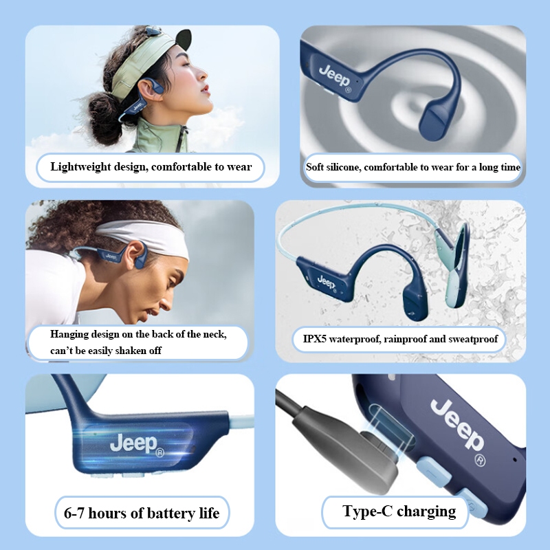 Jeep EC006 Bone Conduction Earphones HiFi Sound Quality Low Latency Bluetooth Headphones Long Standby Waterproof Sports Headset