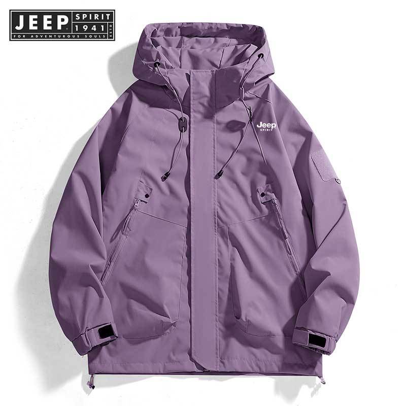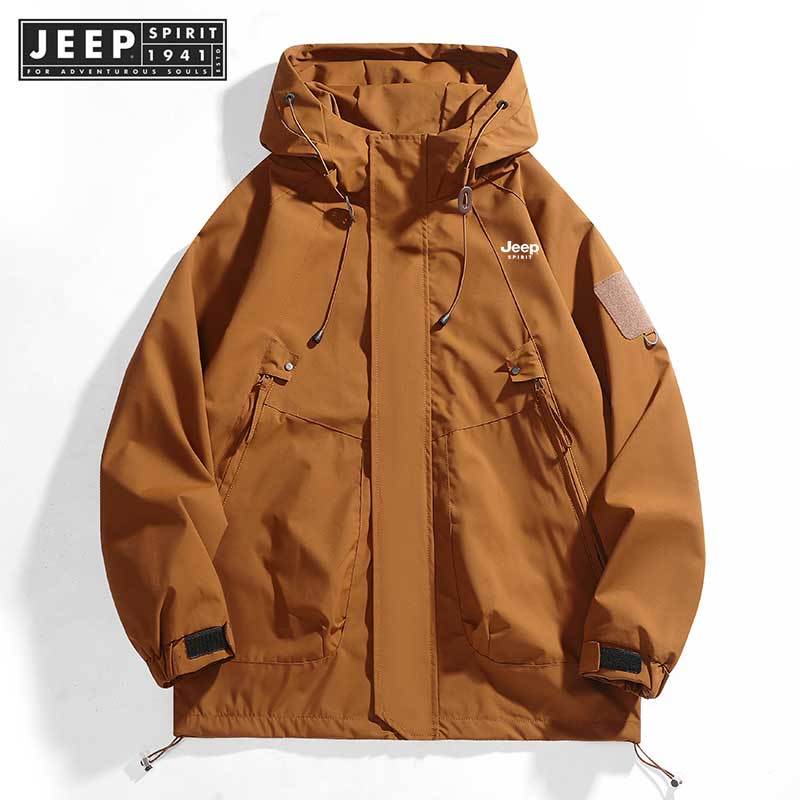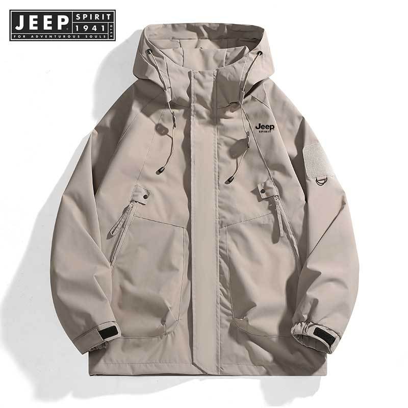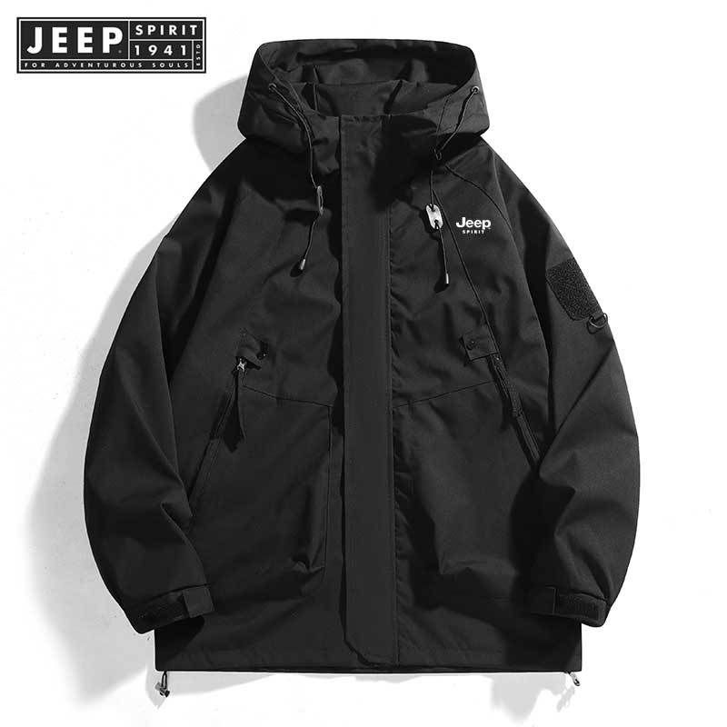 JEEP SPIRIT 1941 ESTD Men Hooded Jacket Zipper Coat Cargo Waterproof Black Bomber Camping Loose Thin Softshell Hooded Hiking Jacket