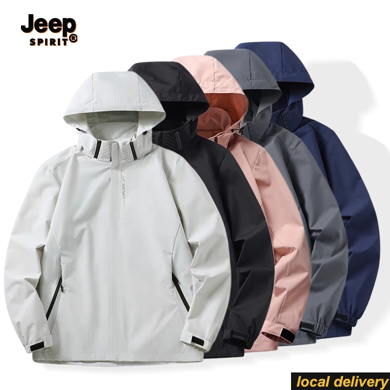 Jeep Spirit Lightweight Waterproof Jacket Hooded Hiking Windbreaker Sports Running Jackets Unisex
