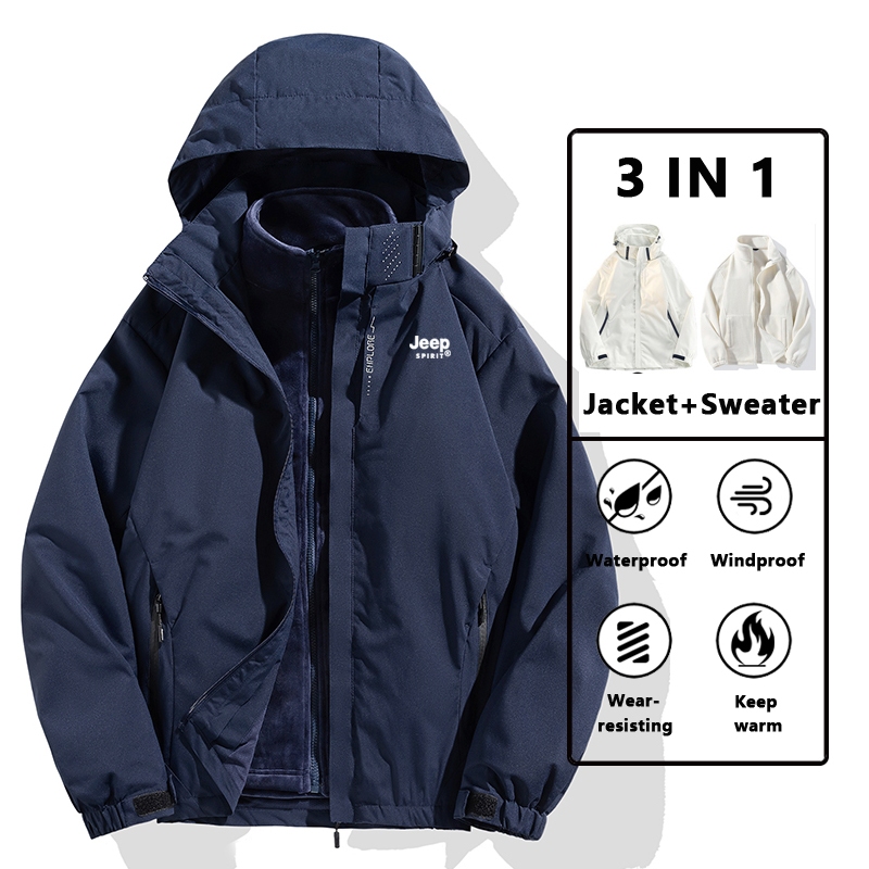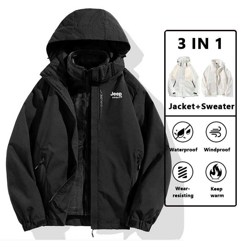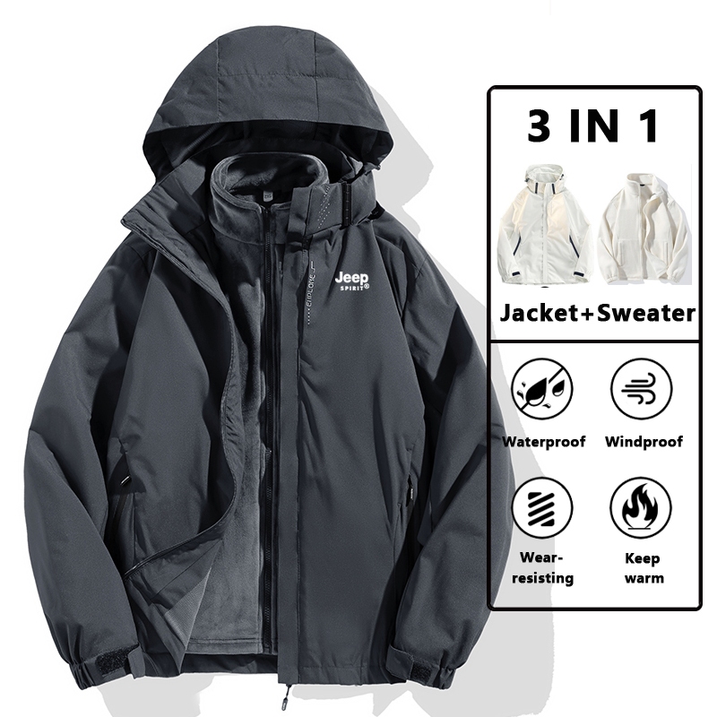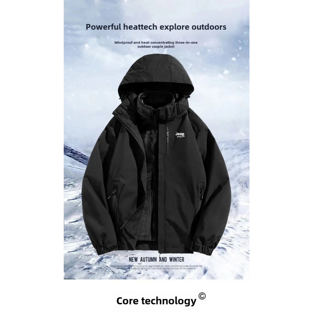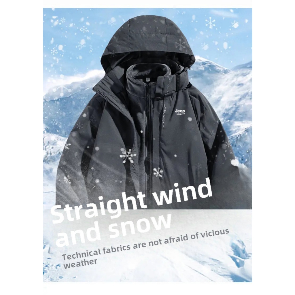 JEEP SPIRIT Winter Windproof Waterproof Men Women Jacket 1+1 Set Jacket zip pockets3 in 1 Multifunctional Outdoor Sports Hiking Jacket