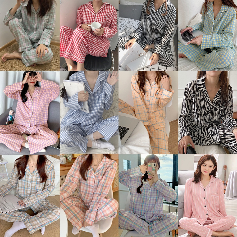 JESSICA Long Sleeve Pajamas Sleepwear Set Baju Tidur Wanita Pyjamas Perempuan