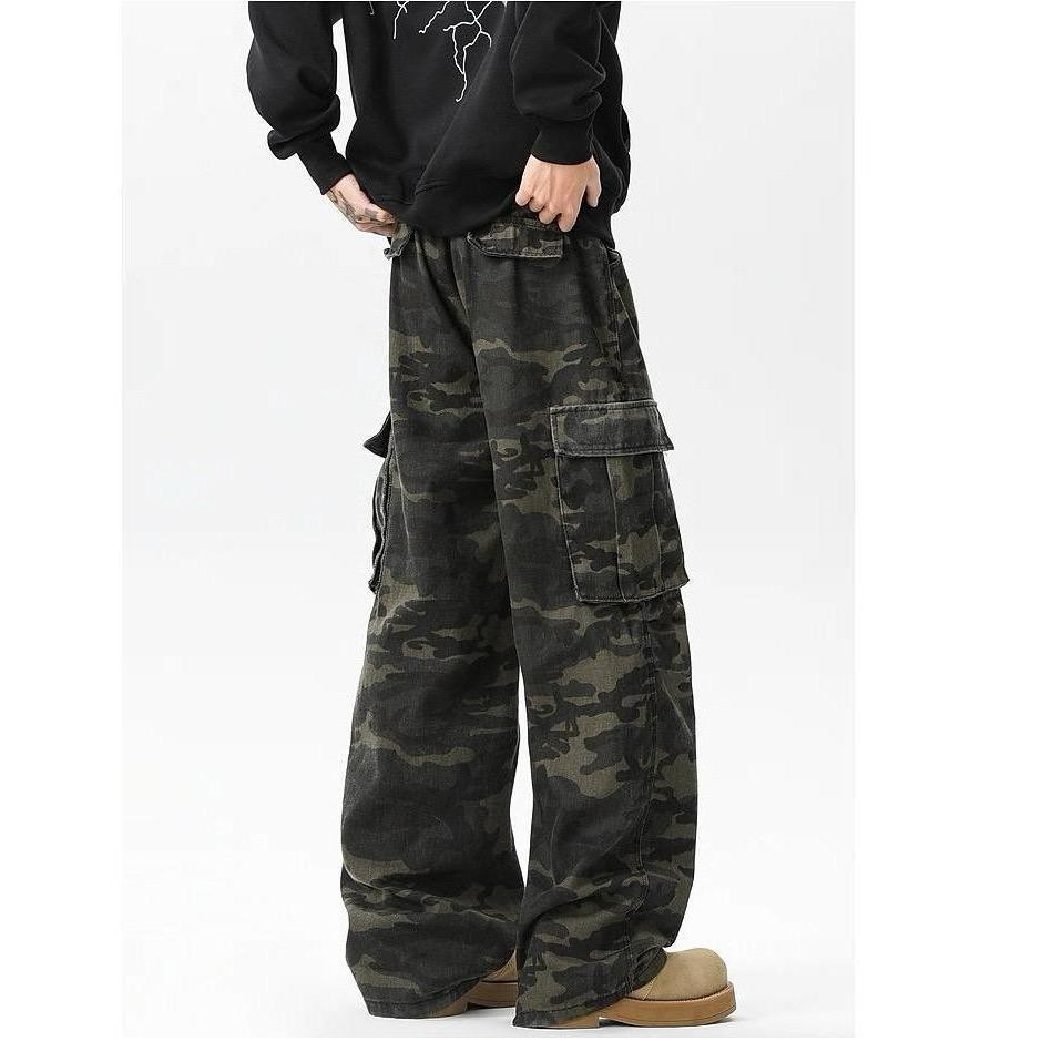 Jies American Multi-Pocket Overalls Casual Straight Pants P0035