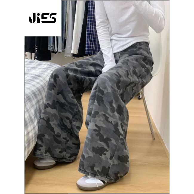 Jies Camouflage Pattern Straight Cut Loose Denim Pants K0118