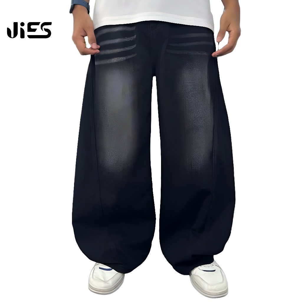 Jies High Waist Retro Scimitar Wide Leg Jeans - Black/Gray P096