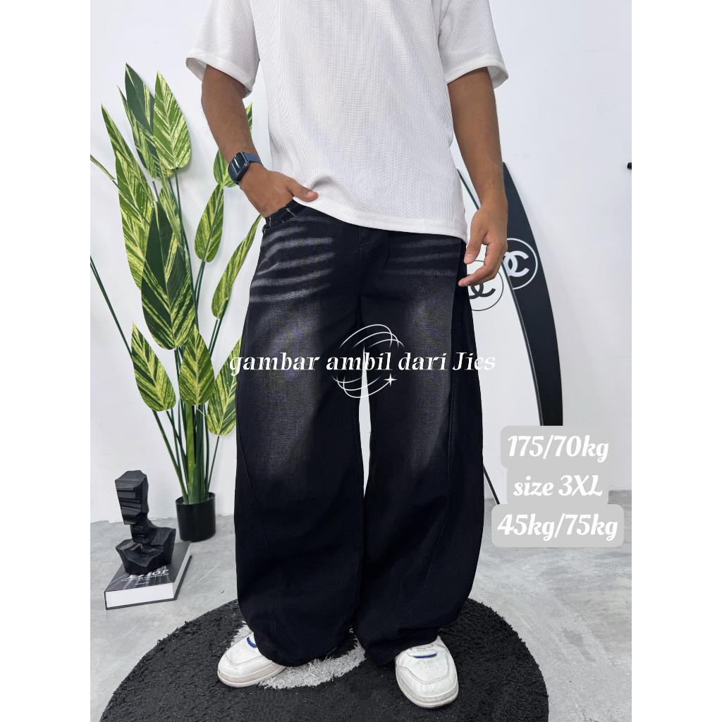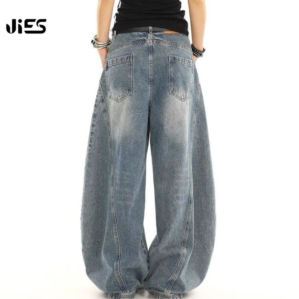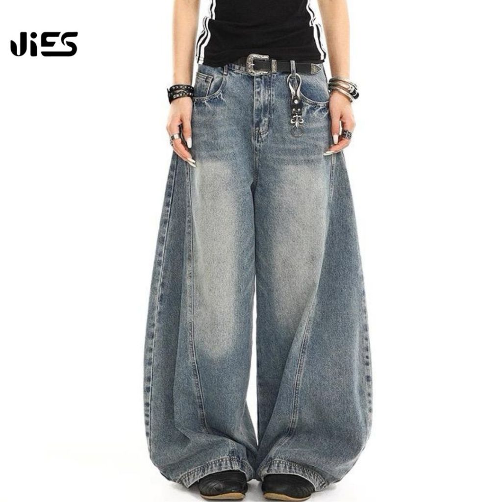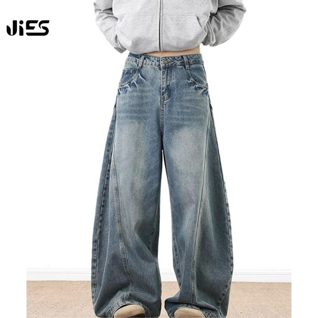 Jies High Waist Retro Scimitar Wide Leg Jeans - Blue P096