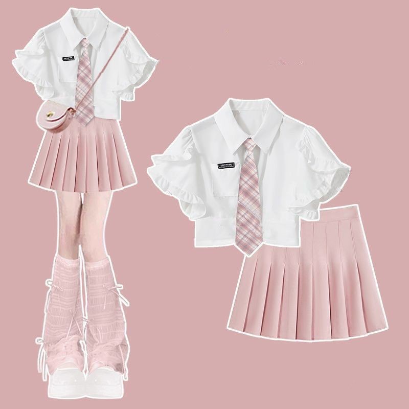 夏日绝美多巴胺穿搭jk制服学院风套装裙女装2025小个子一整套减龄Summer Beautiful Dopamine Wear JK Uniform College20250912