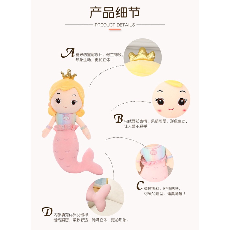 JOJOY Mermaid Princess Plush Dolls Stuffed Plush Toys Girls Dolls Plush Pillow Comel Birthday Gifts