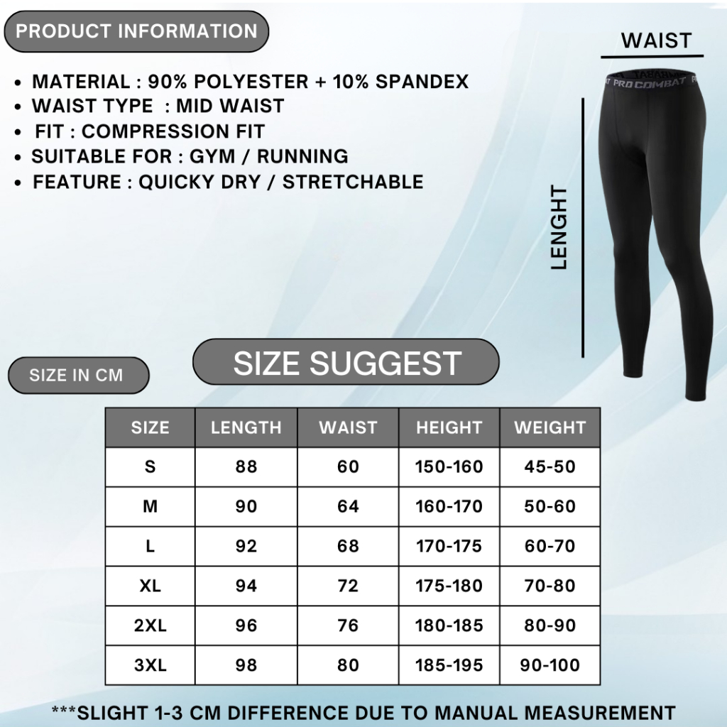[JOM JIMAT] PRO COMBAT Seluar Tight Lelaki Leggings Compression Pants Seluar Sukan Ketat S-3XL