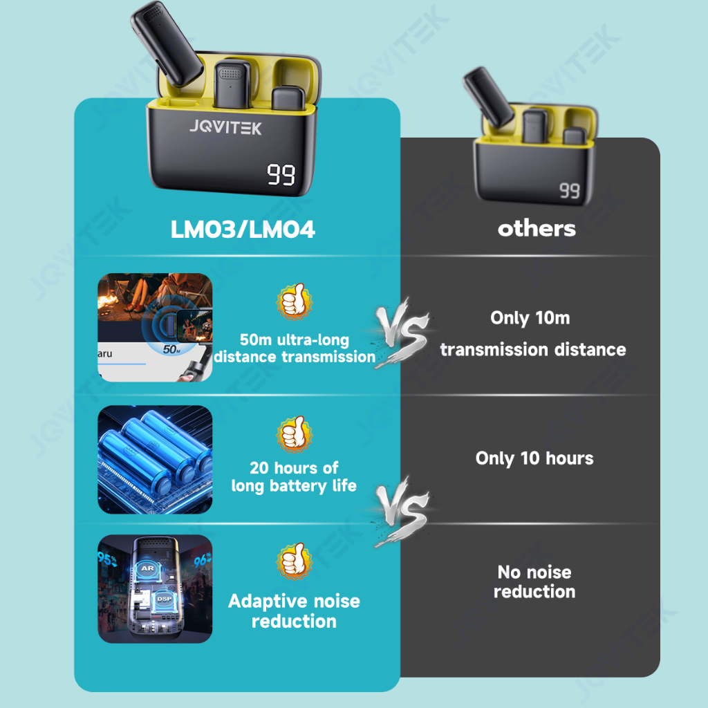 JQVITEK Microphone Wireless Live Lavalier Mini Lapel Mic With ANC Active Noise Cancelling For Type-C IOS Phone Android