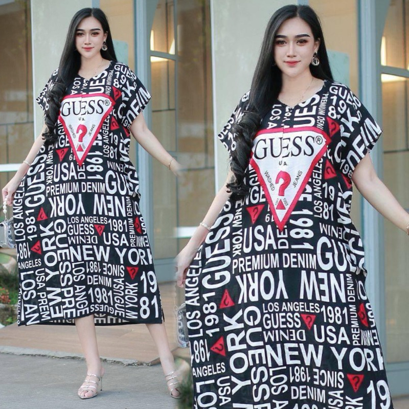 JUMBO LOWO DRESS FOR BUSUI LD 120 FRONT ZIPPER MODERN BRANDED MOTIF JUMBO RAYON BAT DRESS