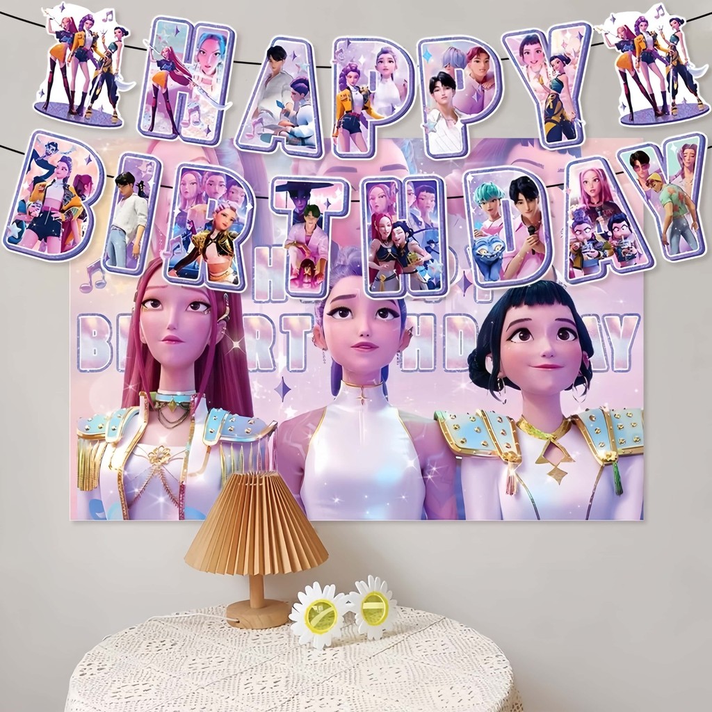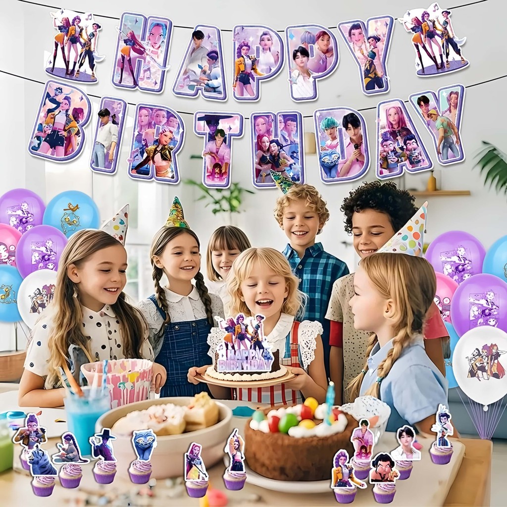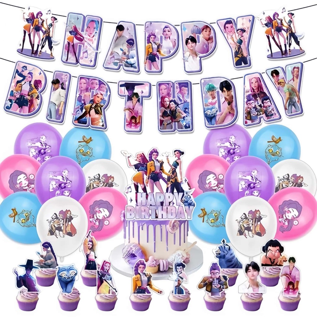 K-Pop Demon Hunter Party Decorations Birthday Party Banners Cake Decorations Balloons 猎魔女团生日装饰