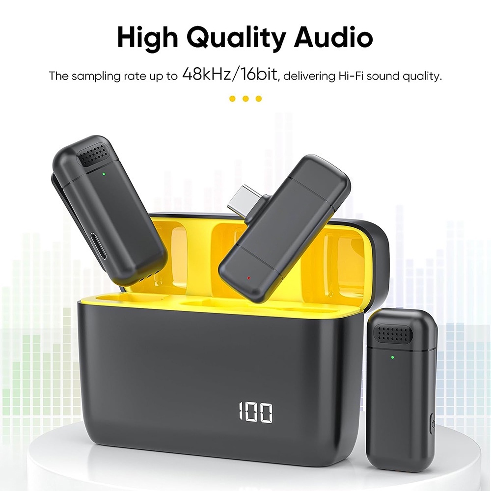 K6 Professional Lavalier Microphone Wireless Microphone with Charging Case Lapel Microphone with Noise Cancellation
