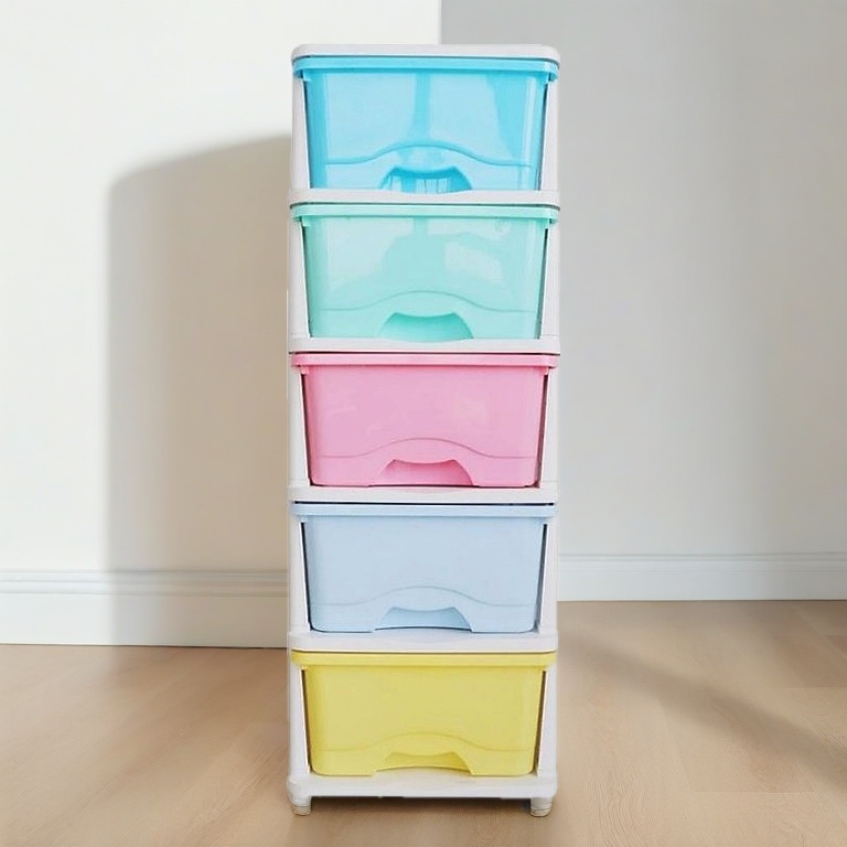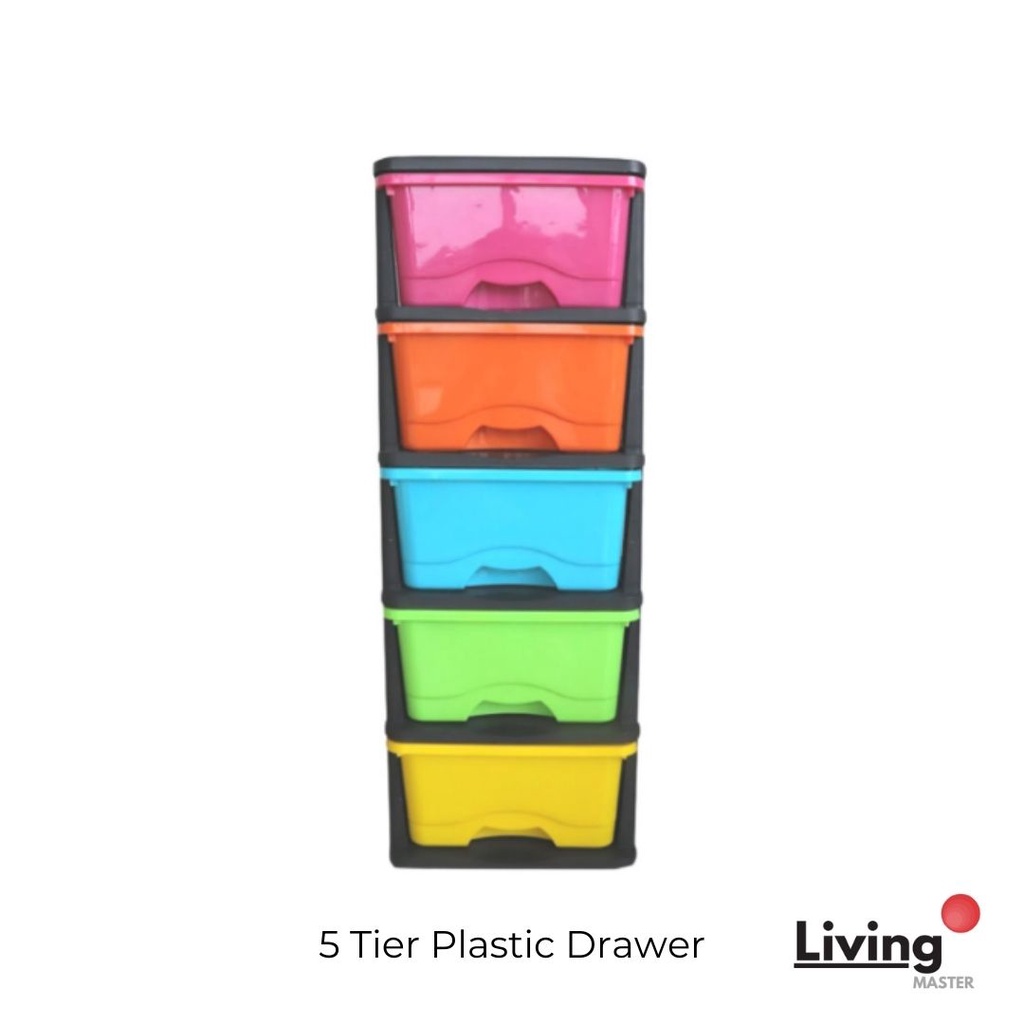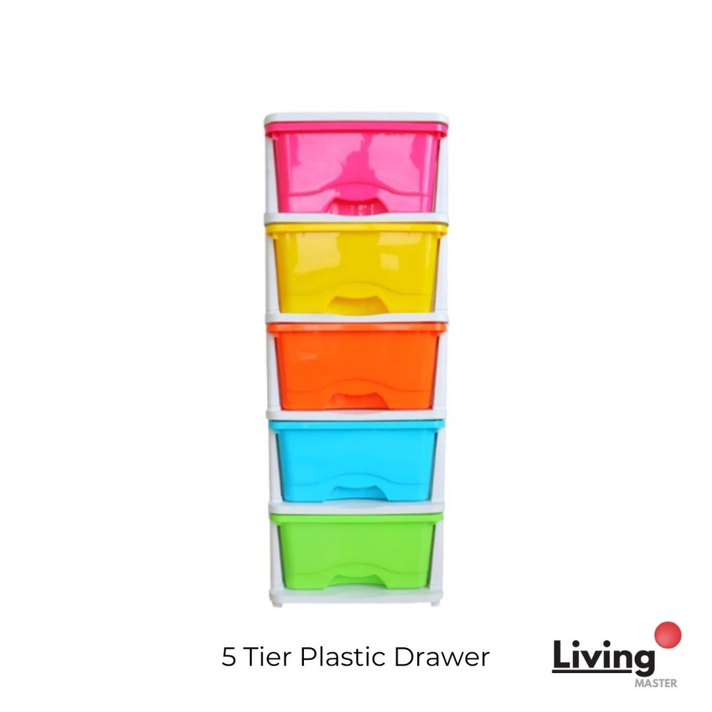 Kabinet Laci Plastik Modern 5 Tier Transparent & Mix Color Plastic Drawer Cabinet Plastic Storage Organizer