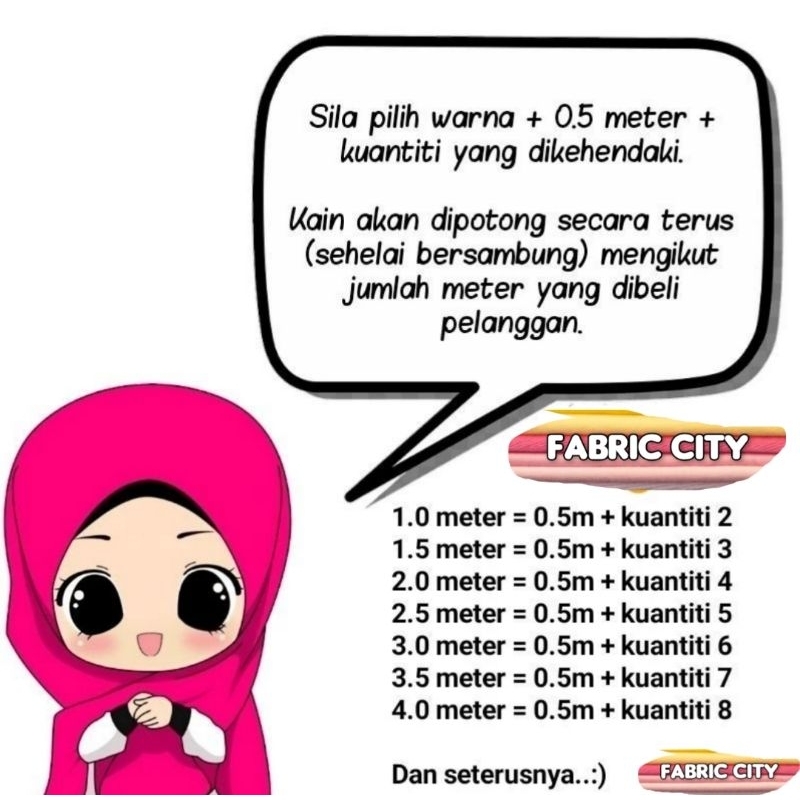 KAIN PASANG WASHIBER SILK BIDANG 44"(harga utk 0.5meter)