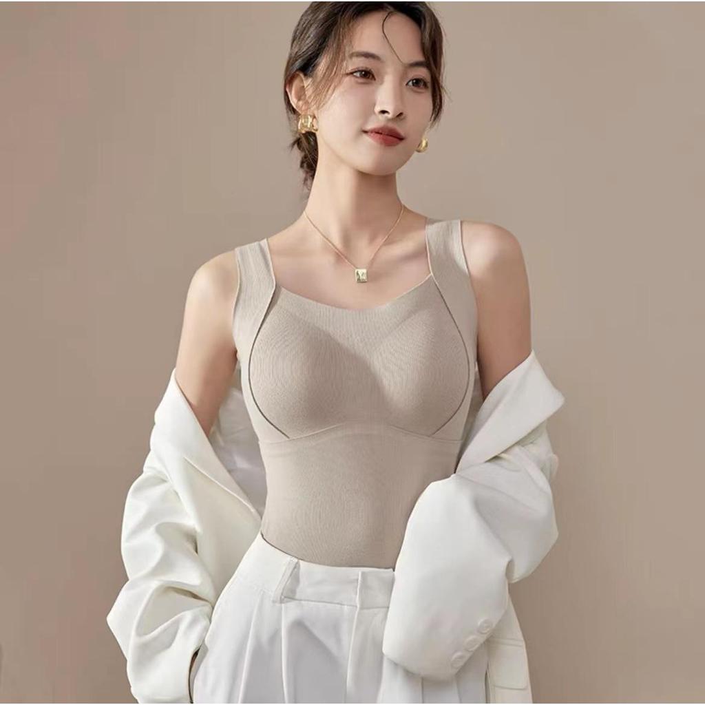 Kamisol Licin Sutera, Rekaan Sehelai, Kusyen Tetap, Slim Fit, Baju Lapisan Asas, Boleh Dipakai Di Luar dan Dalam Tops