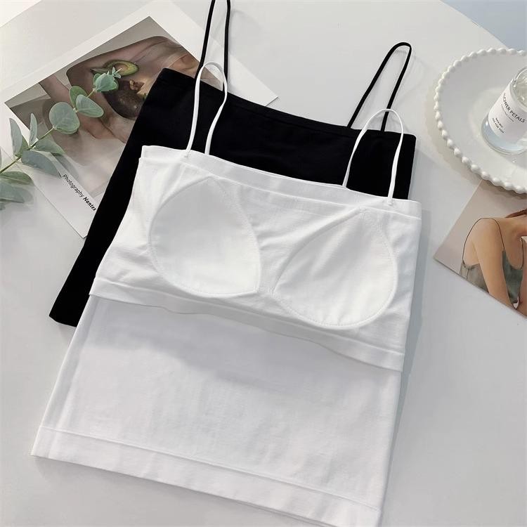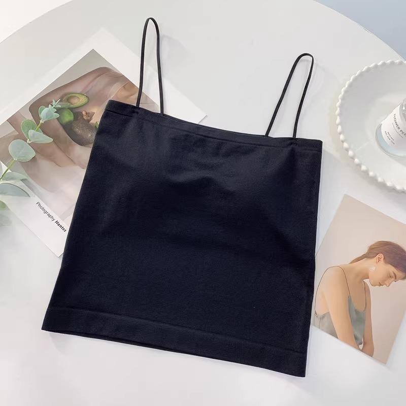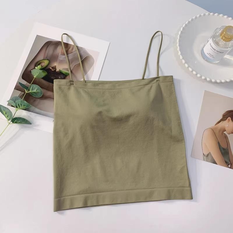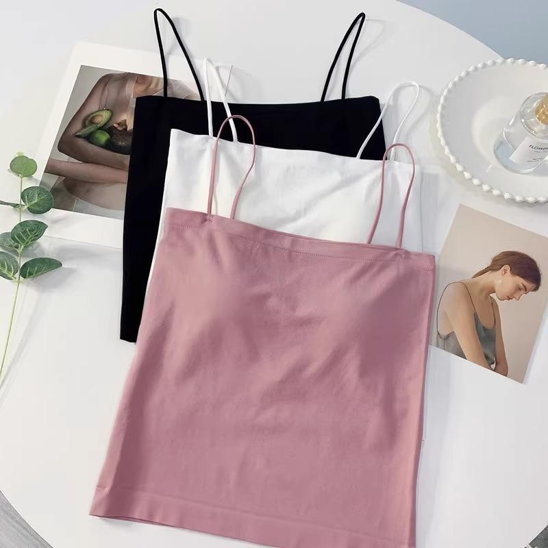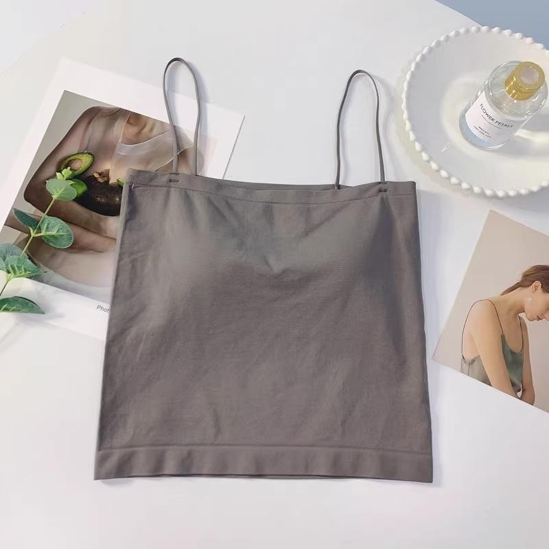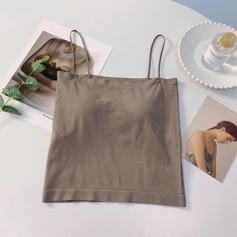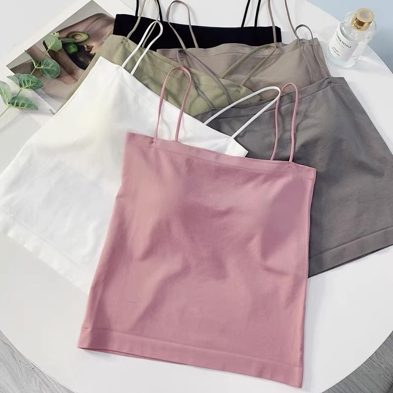 Kamisol Retro Warna Pepejal untuk Wanita dengan Pelapik Dada dan Tali Spageti - Tops, Dusty Pink