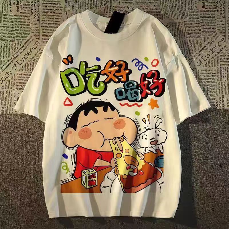 Kaos Oversize Shin - Chan Jepun Vintage, Lelaki Perempuan Musim Panas Trendy