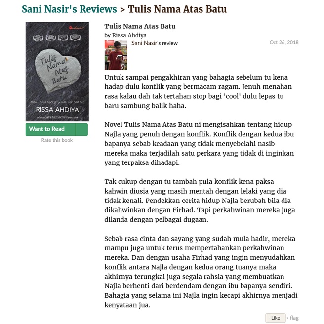 Karyaseni Novel: Tulis Nama Atas Batu : Rissa Ahdiya ISBN: 978-967-2321-14-9