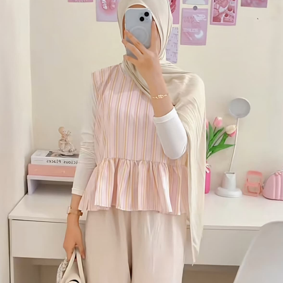 KATUN Inner Salur Blouse Sleeveless Top Ruffle Premium Cotton with Elegant and Comfortable Design - Amora