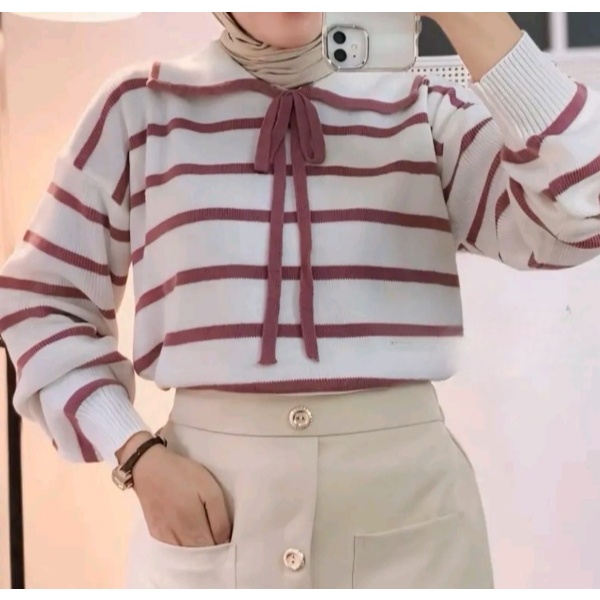 KATUN Women's Knitted Top with Cute Striped Collar, Adorable Acrylic Material, Cool Cotton Knit