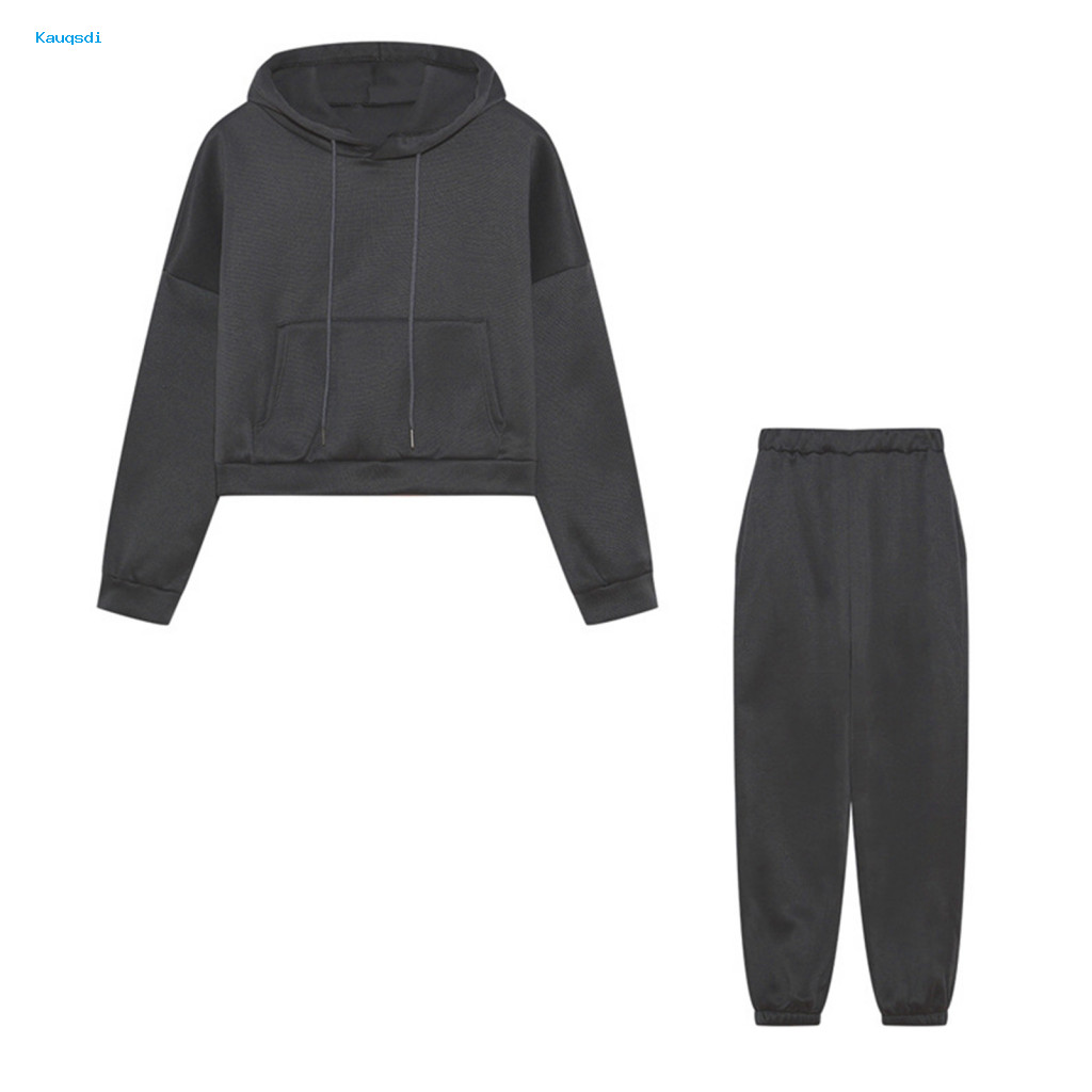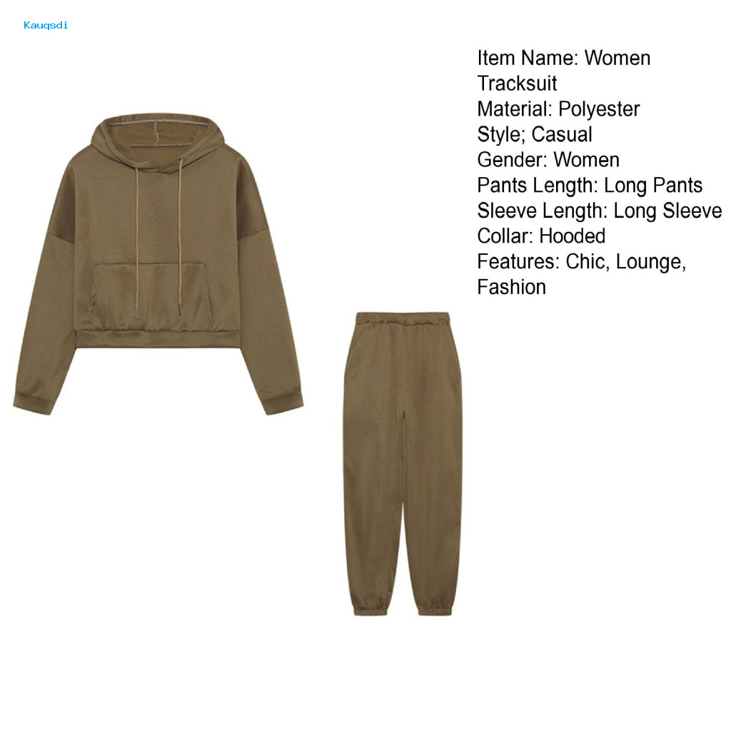 KAU Women's Polyester Sportswear Set - 2-Piece Tracksuit with Long-Sleeve Hoodie & Joggers for Everyday Wear