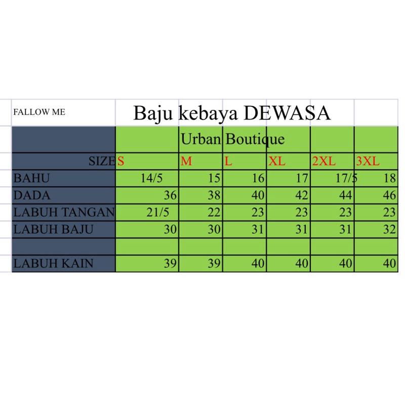 KEBAYA MODERN DEWASA PLAIN CEY IRONNESS SIZE S-3XL