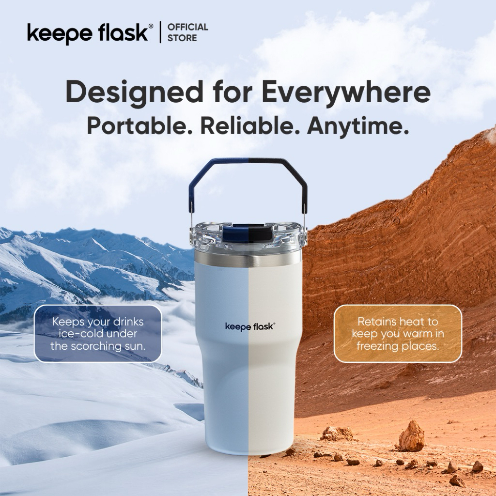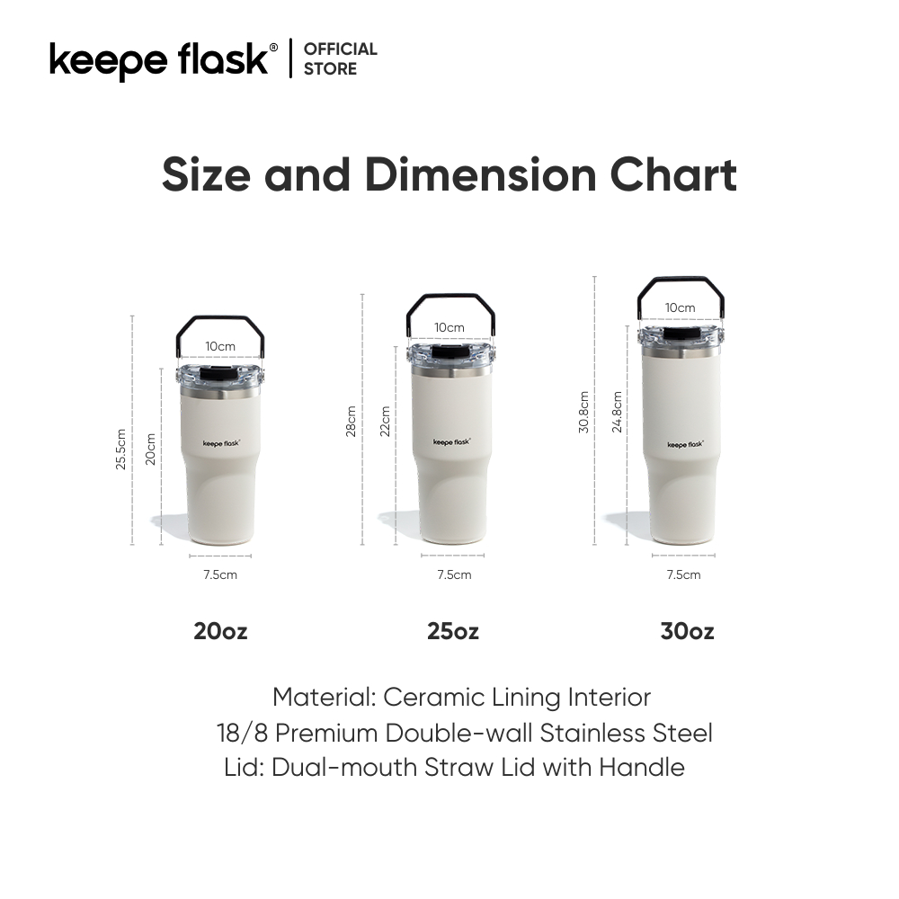 Keepe Flask Premium Ceramic Liner Tumbler Vacuum Insulated Hot and Cold Coffee Tumbler with Handle