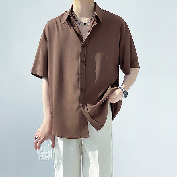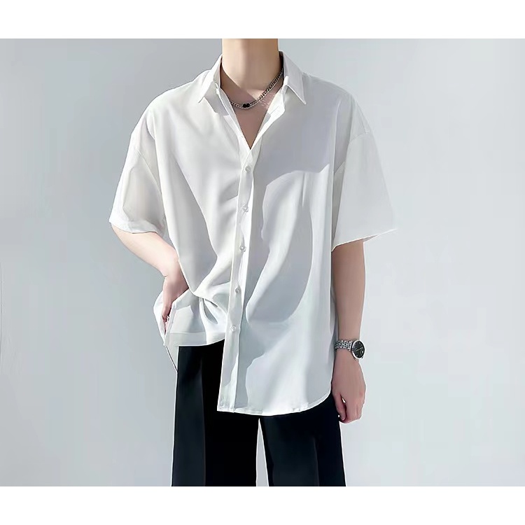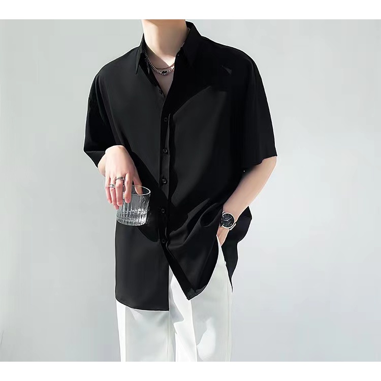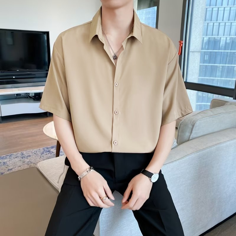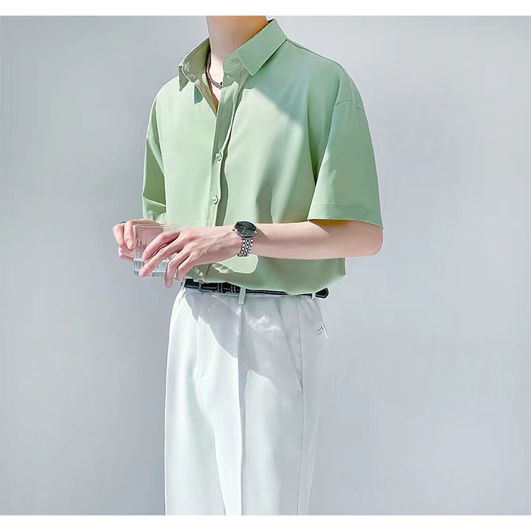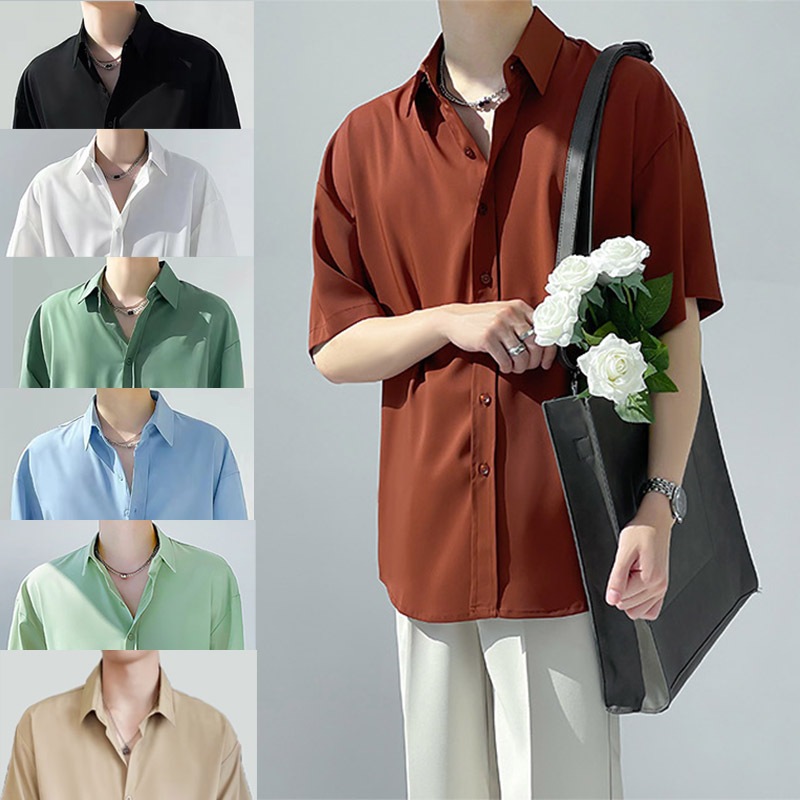 Kemeja Kasual Polos Lengan Pendek Gaya Korea, Stok Sedia Untuk Lelaki, Baju Kerja Formal Perniagaan, Baju Polo Putih 8 Warna Tersedia
