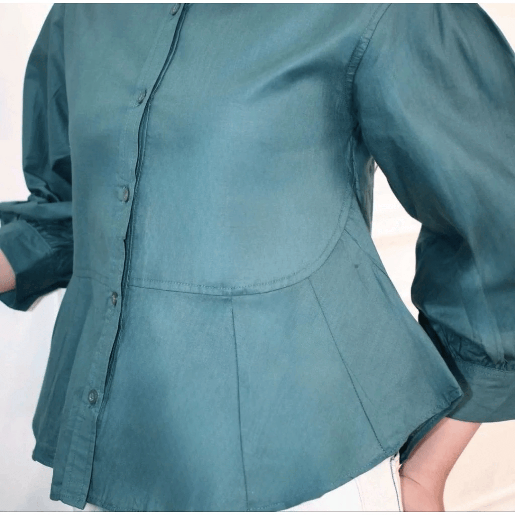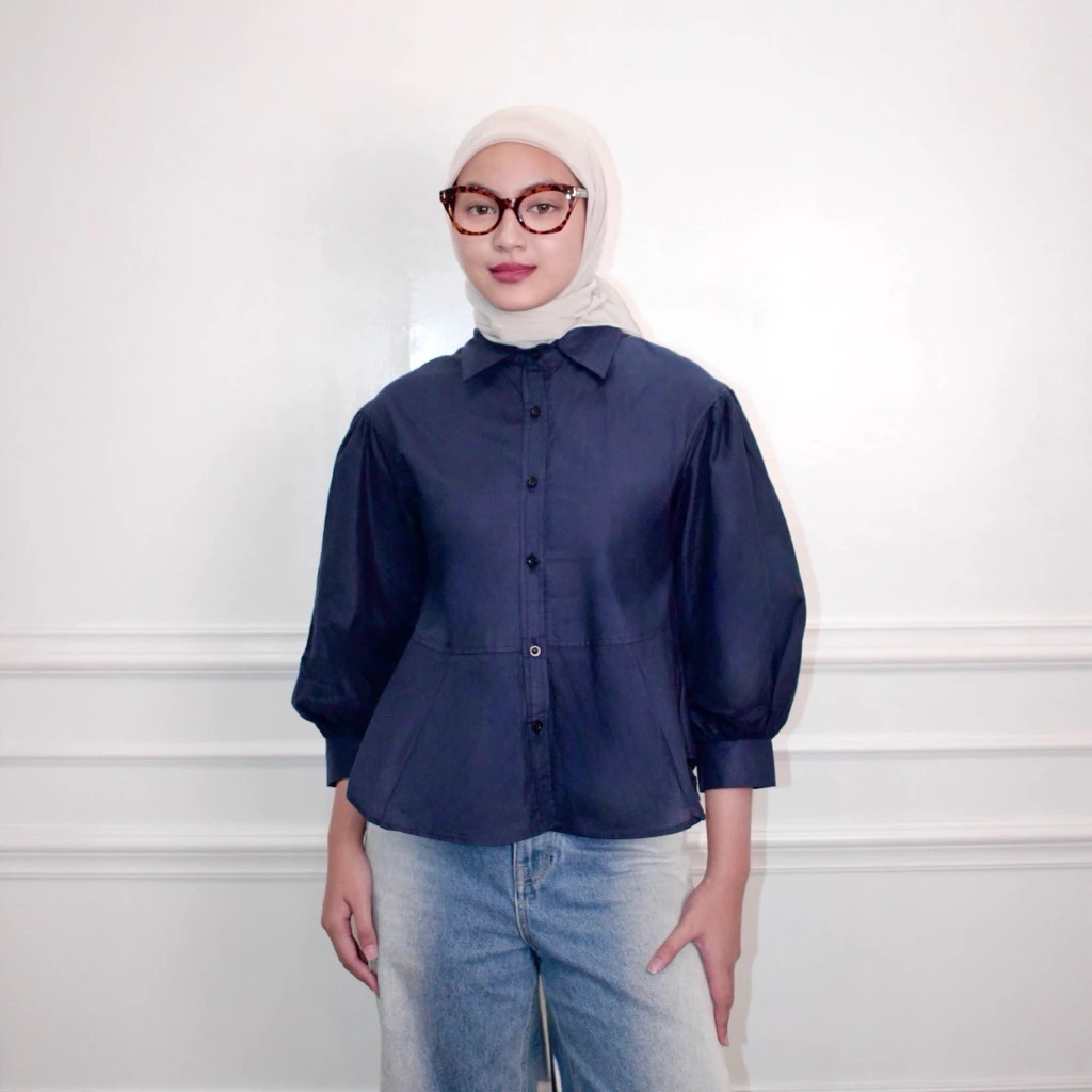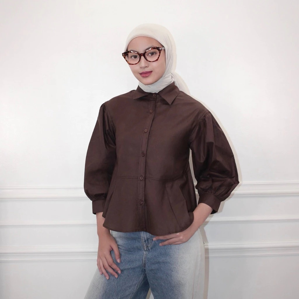 KEMEJA KATUN ROSE Fitted Shirt | Balloon Sleeve | Korean Casual Office Cotton Linen Ruffle Blouse Shirt Top