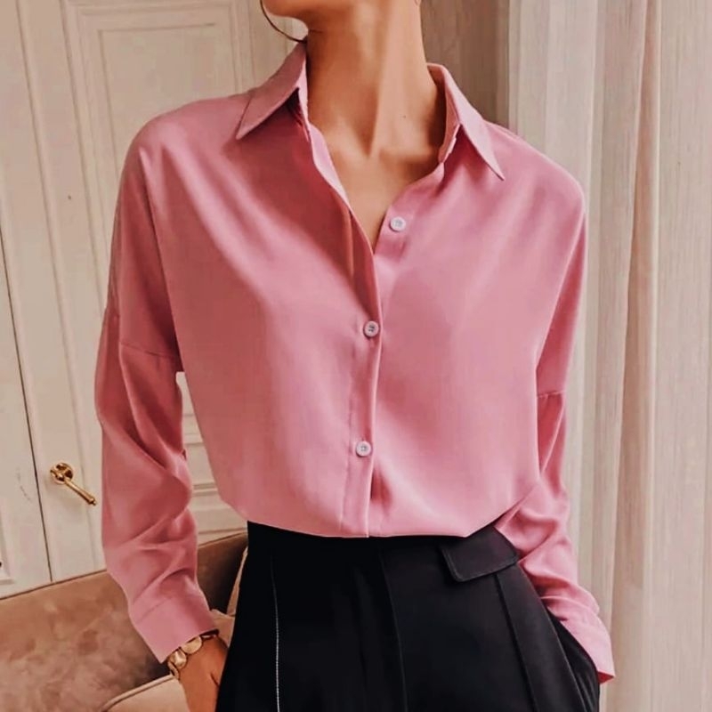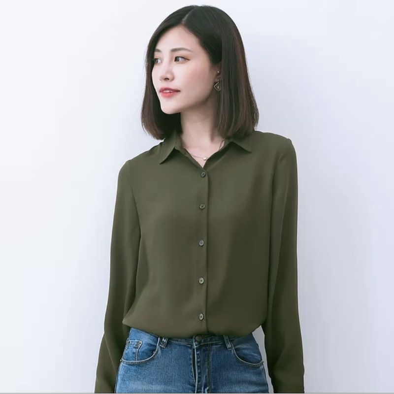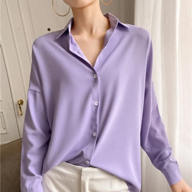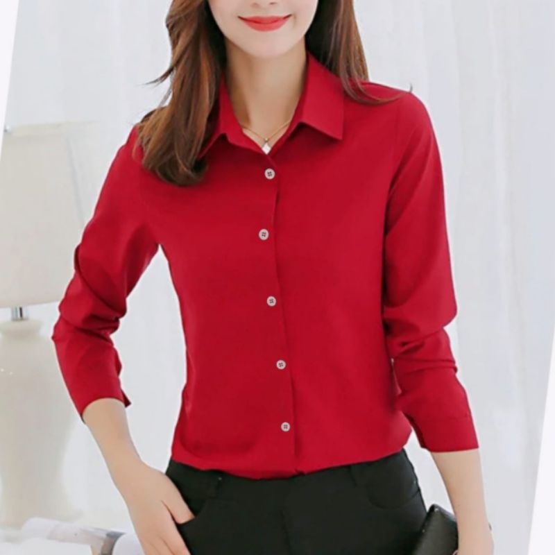 KEMEJA KATUN Women's Plain Casual Shirts, Women's Long Sleeve Shirts, Formal Work Shirts, Women's Cotton Tops