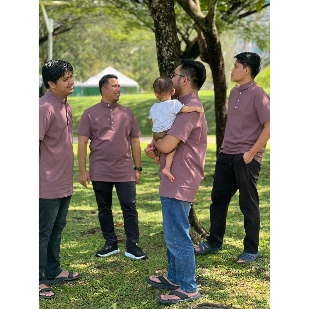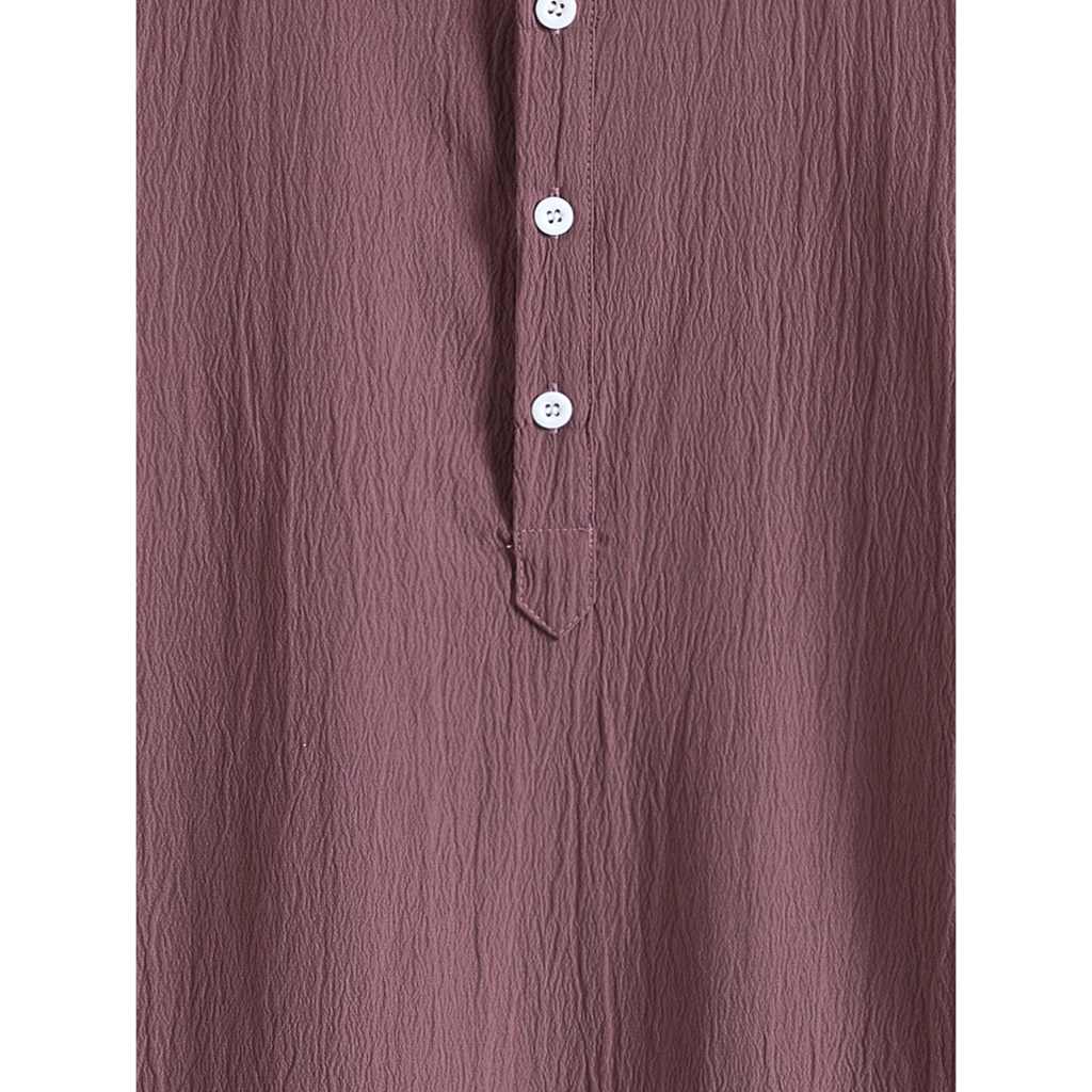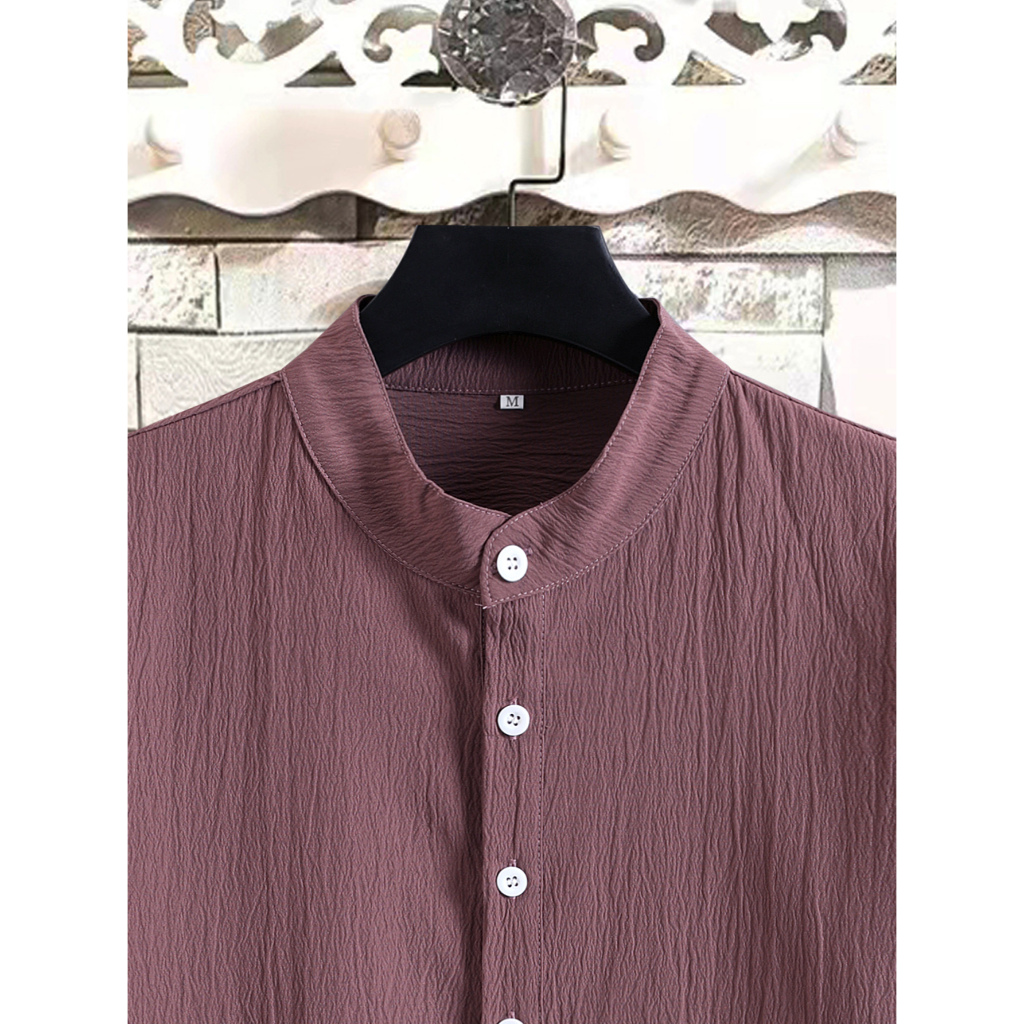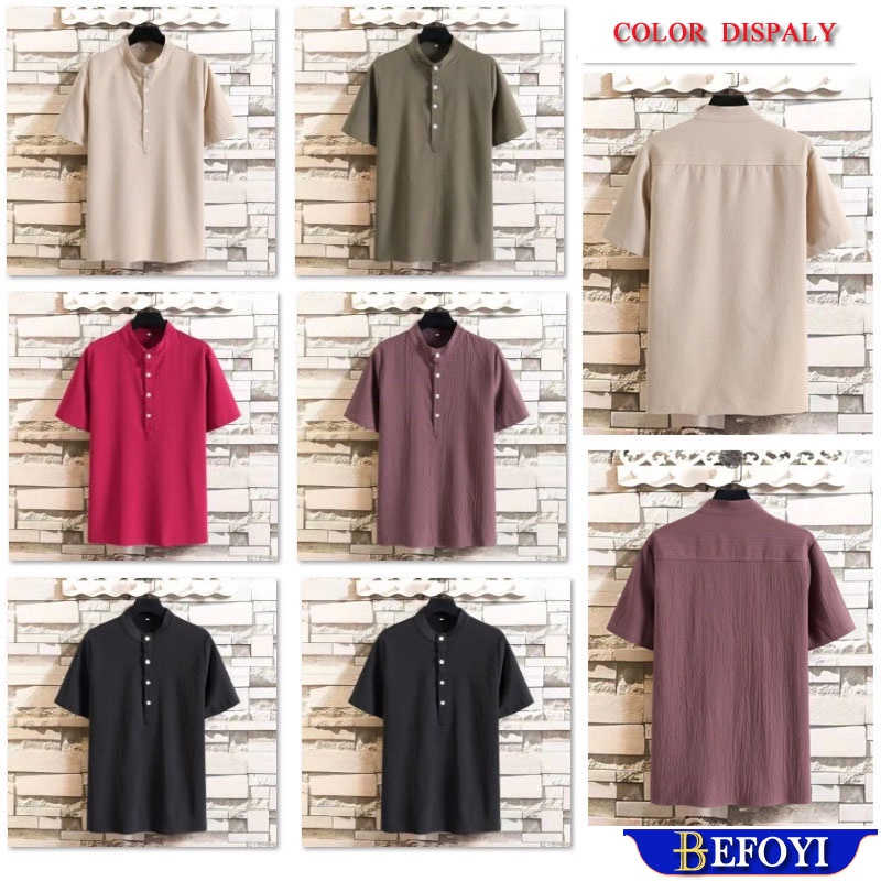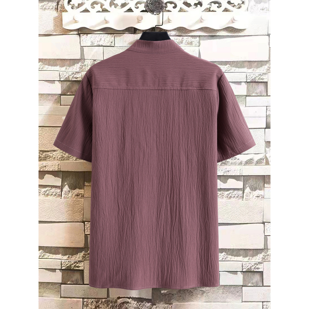 Kemeja Kurta Lelaki Baju Raya Cotton Linen Shirts kurta lengan pendek Purple Casual Men's Short Sleeves Korean