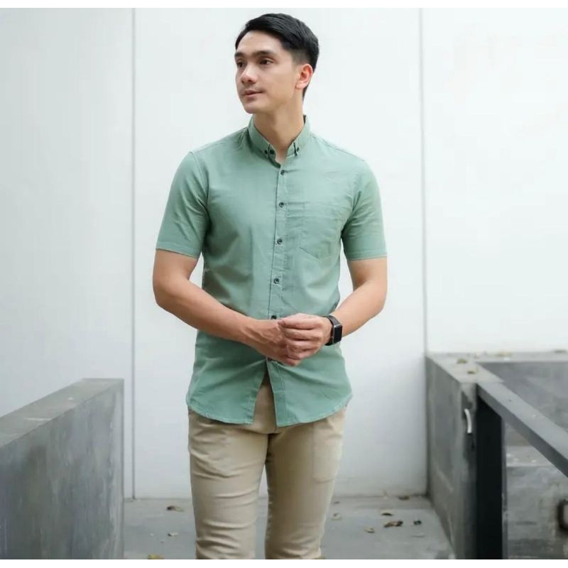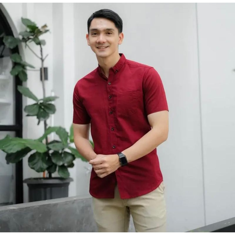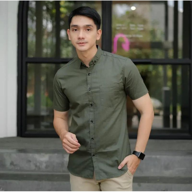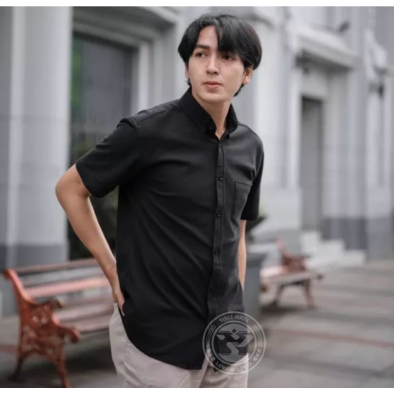 KEMEJA Men's Plain Shirt Short Sleeve Slimfit Work Formal Casual Distro Premium