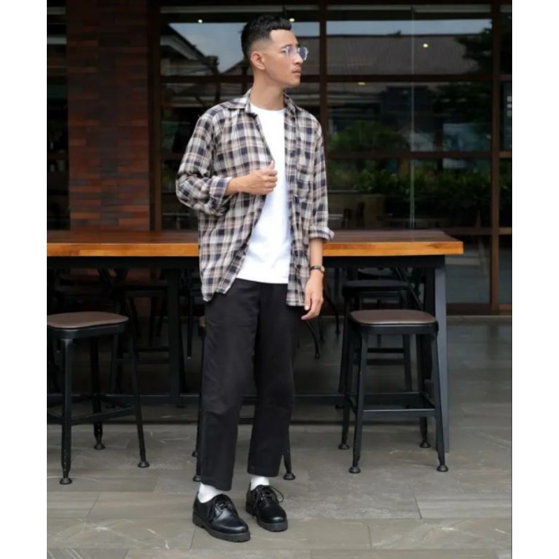 KEMEJA Men's Women's Long Sleeve Flannel Shirt, Latest Contemporary Pattern Catur Orange, Contemporary Distro