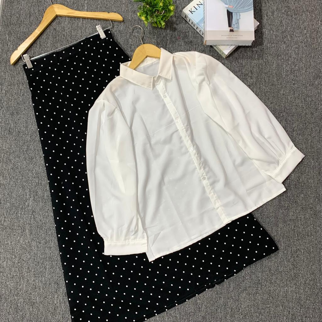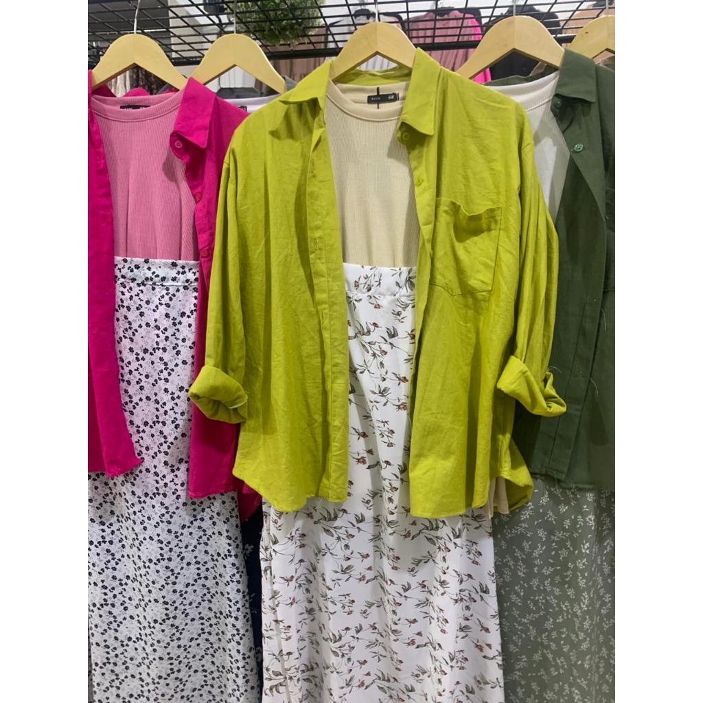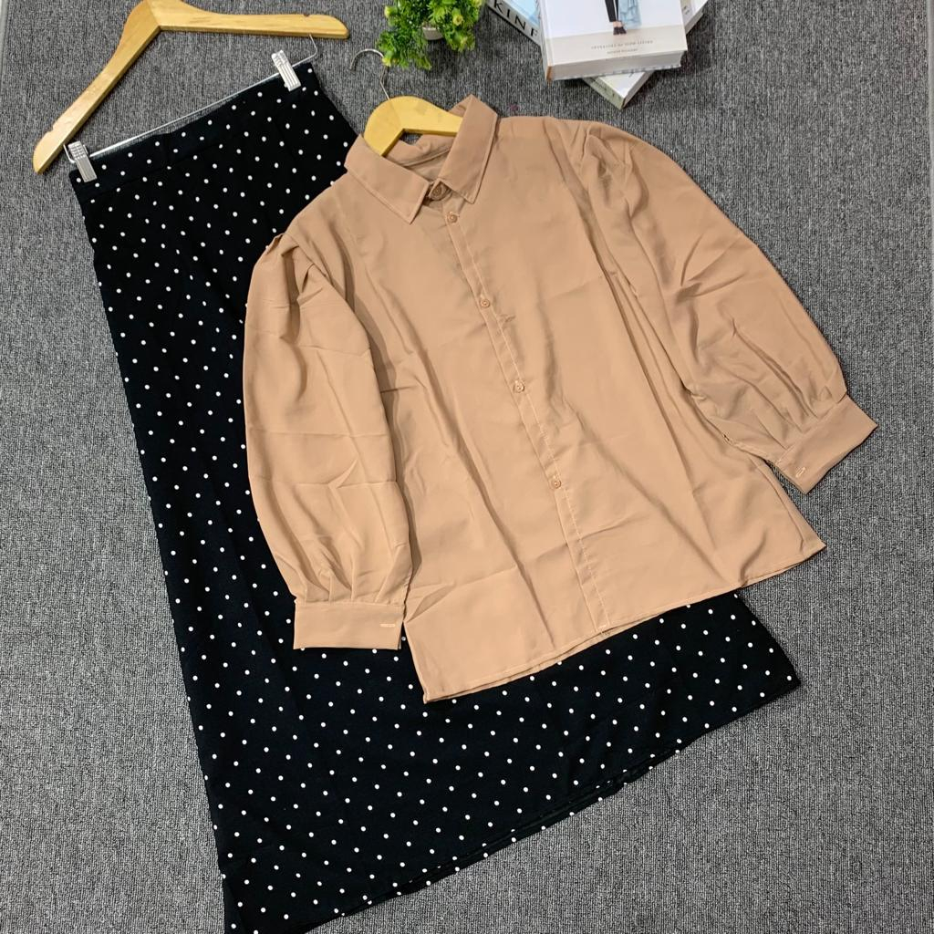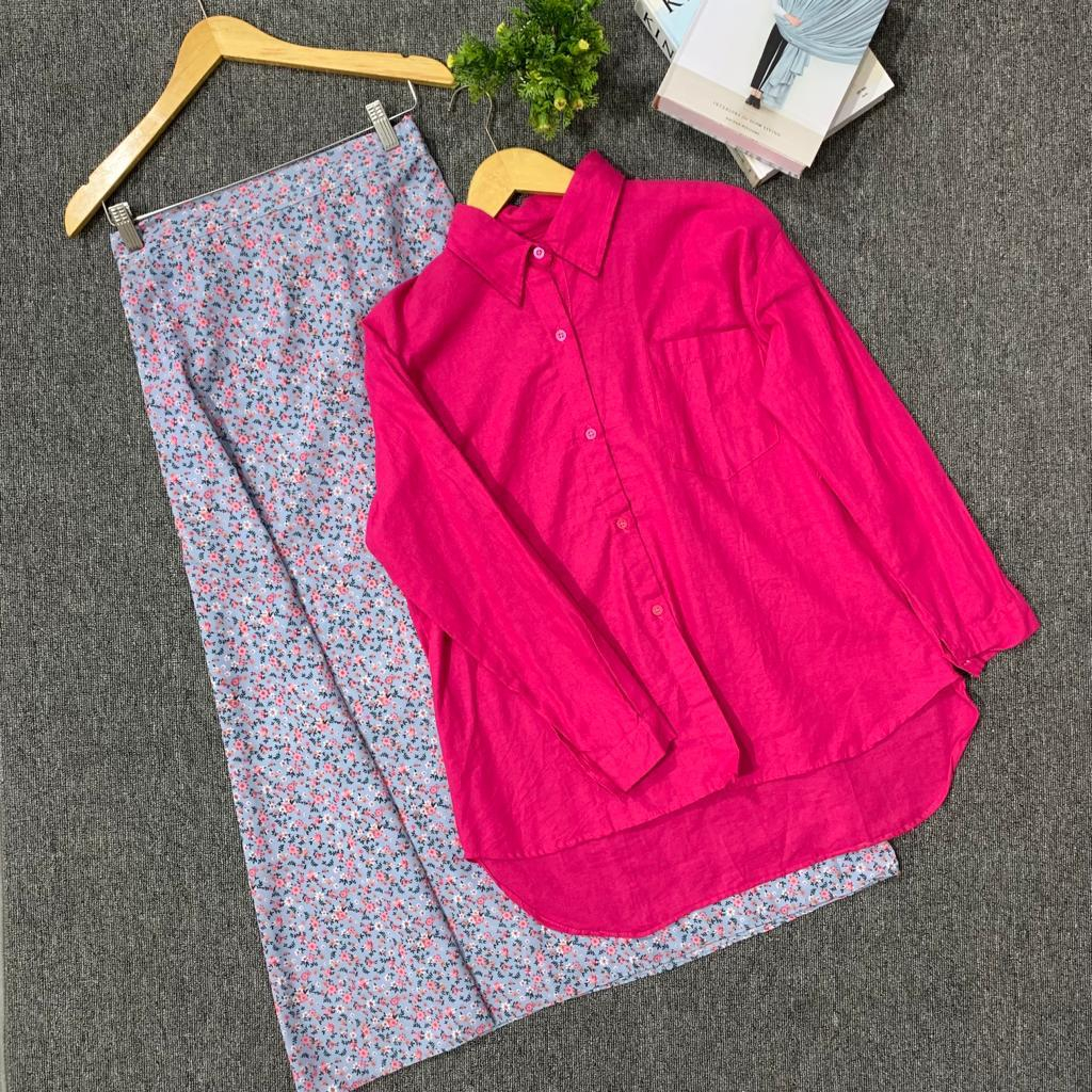 KEMEJA ONESET 2IN1 SHIRT SKIRT MOTIF korean style women's suit LINEN top PUFFY RUFFY shirt / polka skirt suit